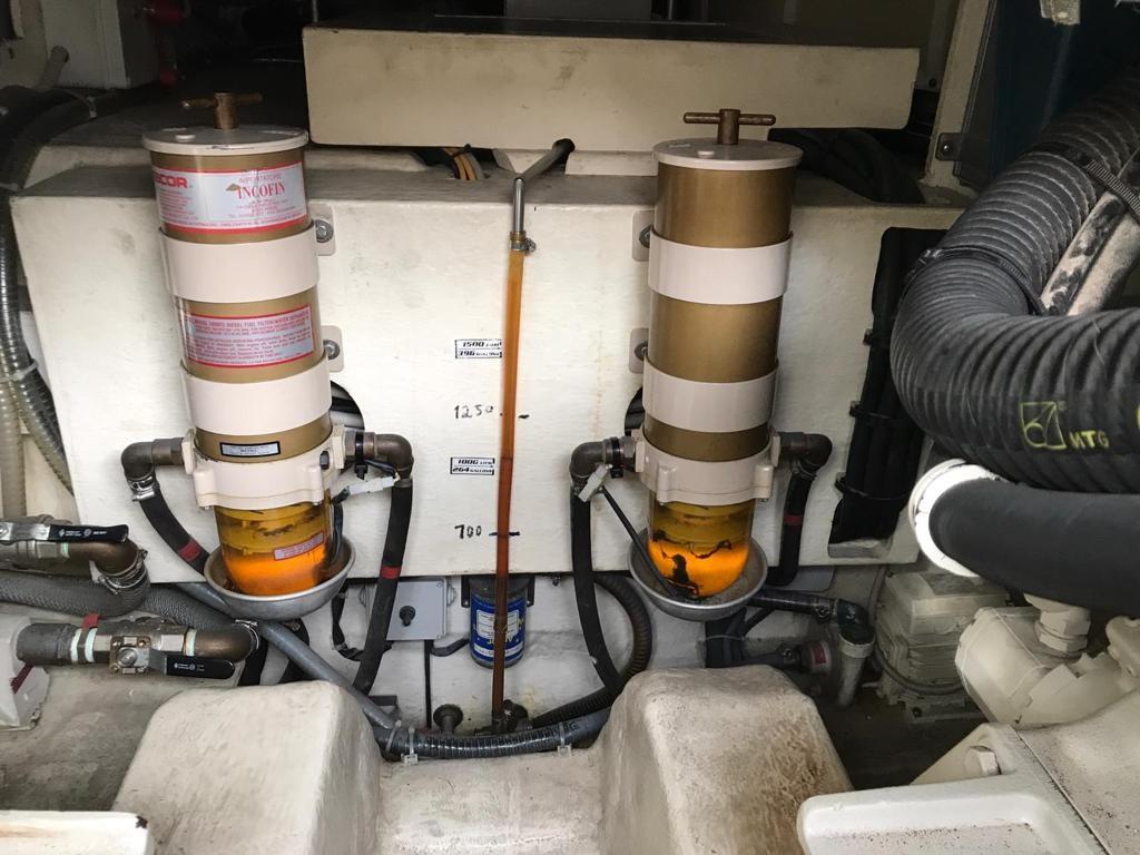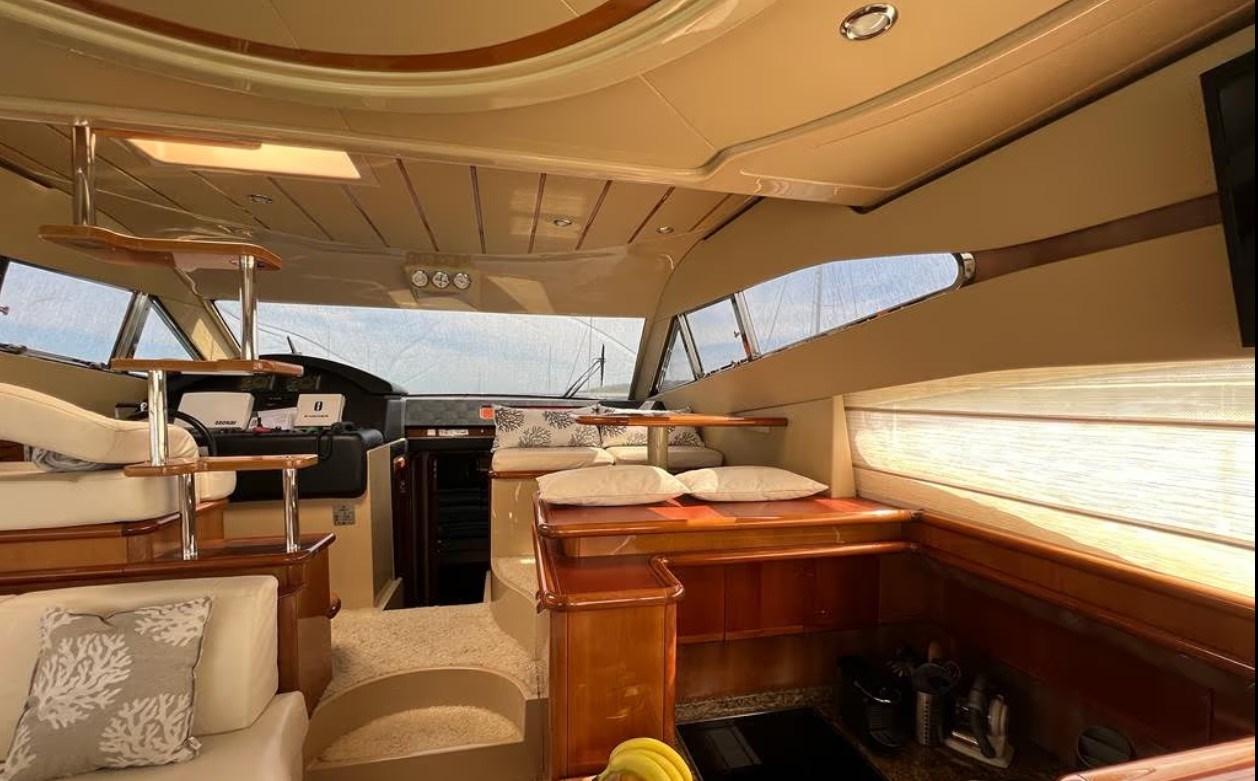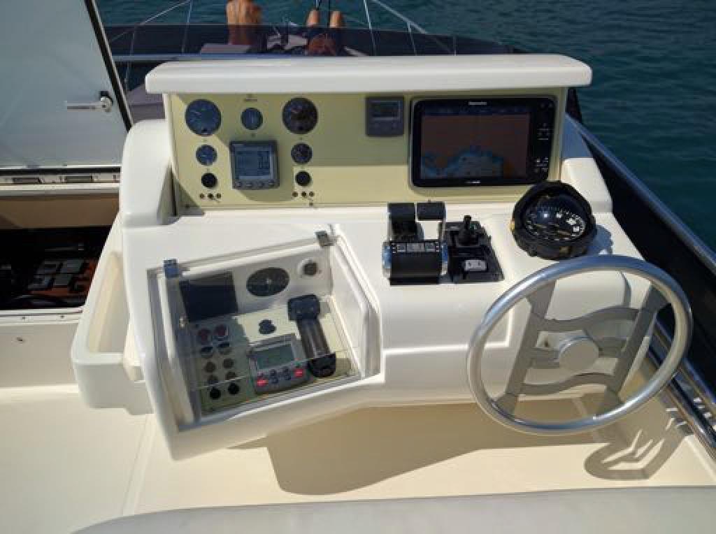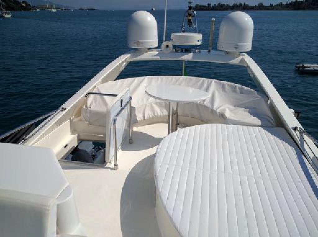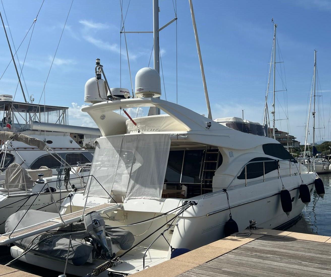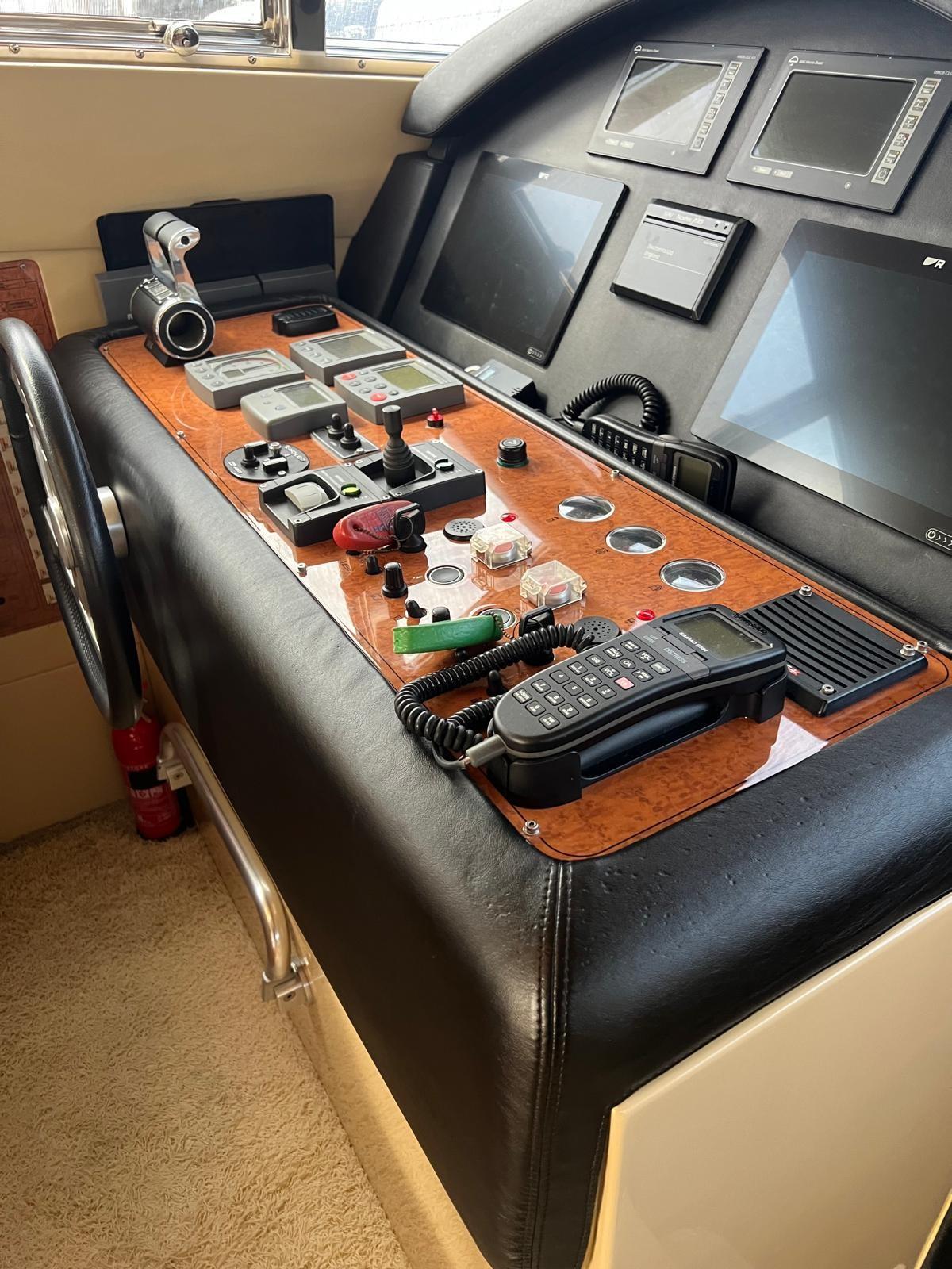 Engine Alarm, Bilge Alarm, Anchor (Ultra Anchor 27 kg + catena 100 mt), Spare shaft, Water pressure pump (doppia), 8 Batteries (nuove 2022), Deck Shower, 2 Secondary Propeller, Hydraulic Flaps, Fire Extinguishing System (revisione 2025), Flaps Indicators, Washbasin in the cockpit, Courtesy Lights, Underwater lights, Gangway (Besenzoni), Platform, Manual Bilge Pump, Entry door, Teak Cockpit, Shorepower connector, Water harbor connector system, Voltage Rectifier, Electronic instrumentation repeater, Electric Windlass, swimming ladder, cockpit table, Horn, 2 Stern Winches.