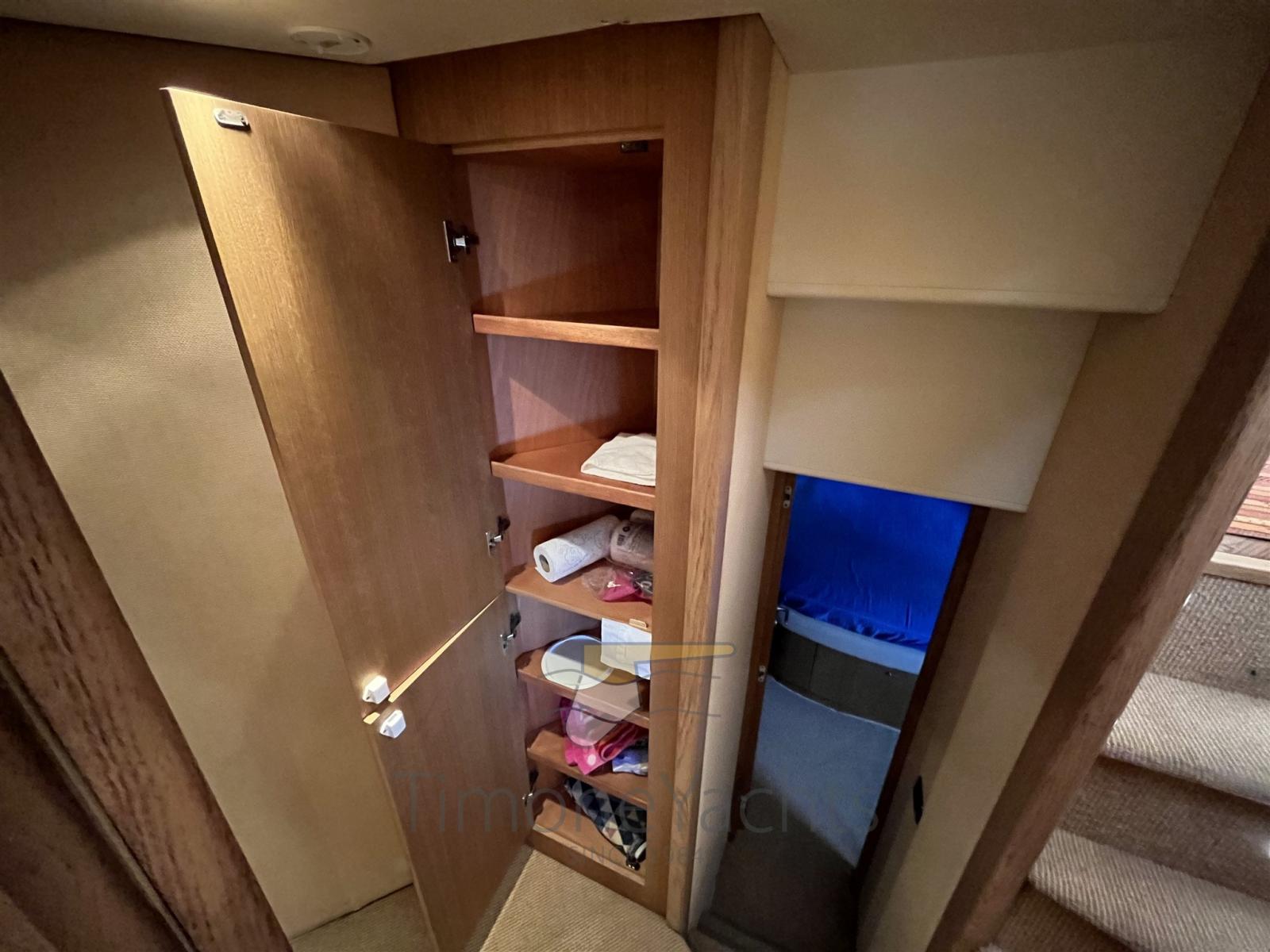 Engine Alarm, Anchor (Catena nuova 50 mt), Water pressure pump, 2 Battery charger (Nuovi barca e generatore), Deck Shower, Twin Steering, Directional Spotlight, Hydraulic Flaps, Fire Extinguishing System, Flaps Indicators, Anchor Chain Washdown, Underwater lights (2 bianche e 2 blu), Gangway (in teak), Platform (in teak), Automatic Bilge Pump, Teak Cockpit, Shorepower connector, Rollbar, Electric Windlass, swimming ladder, Saddles for tender, cockpit table (in teak e acciaio), Tender (SUR 350 30cv con trim idraulico), 2 Stern Winches.
