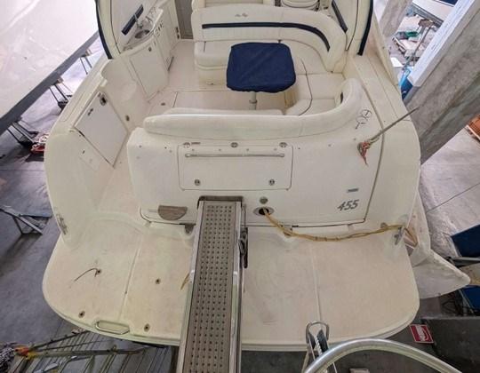 Bilge Alarm, Water pressure pump, 6 Batteries, Deck Shower, Directional Spotlight (telecomandato), Hydraulic Flaps ((Trim Tabs)), Gangway (Opacmare), Platform, Shorepower connector, swimming ladder, cockpit table.