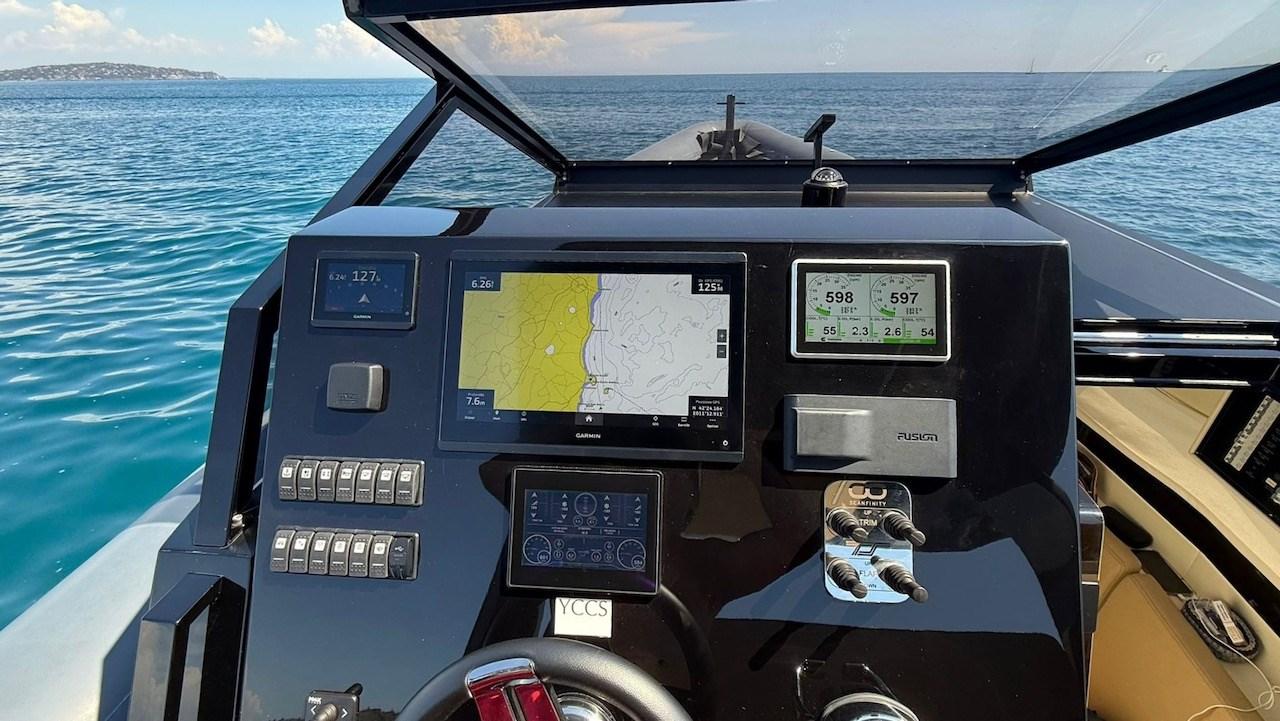 Garmin GPS/plotter - Garmin echo sounder - Garmin autopilot - Garmin VHF - digital engine control panel - digital surface transmission control panel - chain meter counter.