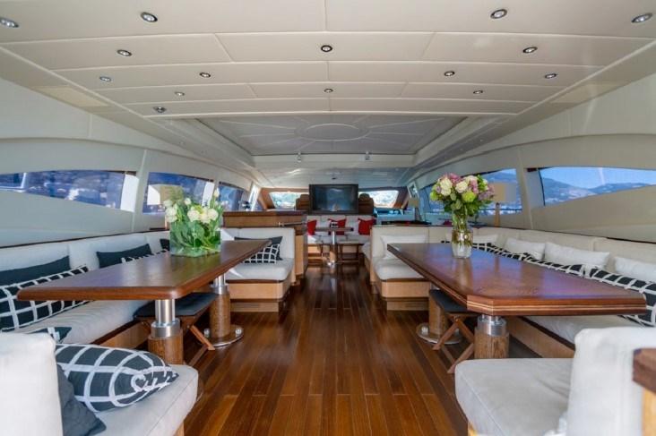 The interior décor of this MANGUSTA 108 has a fresh and contemporary look, with satin oak and wenge wood used to add tone and texture.
