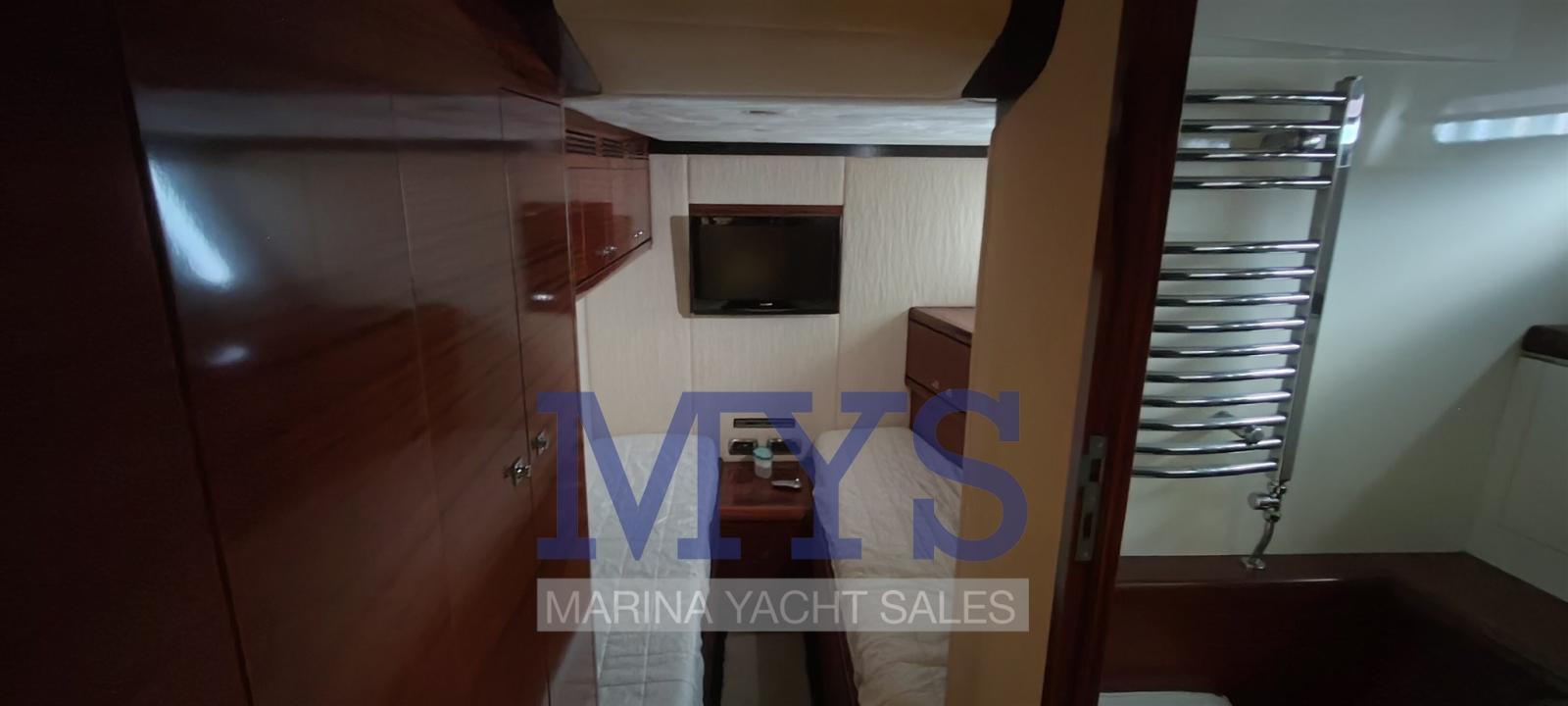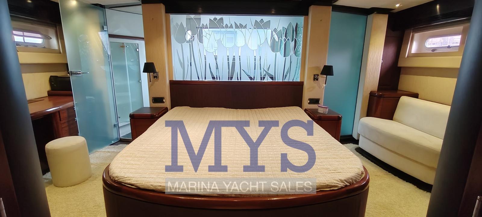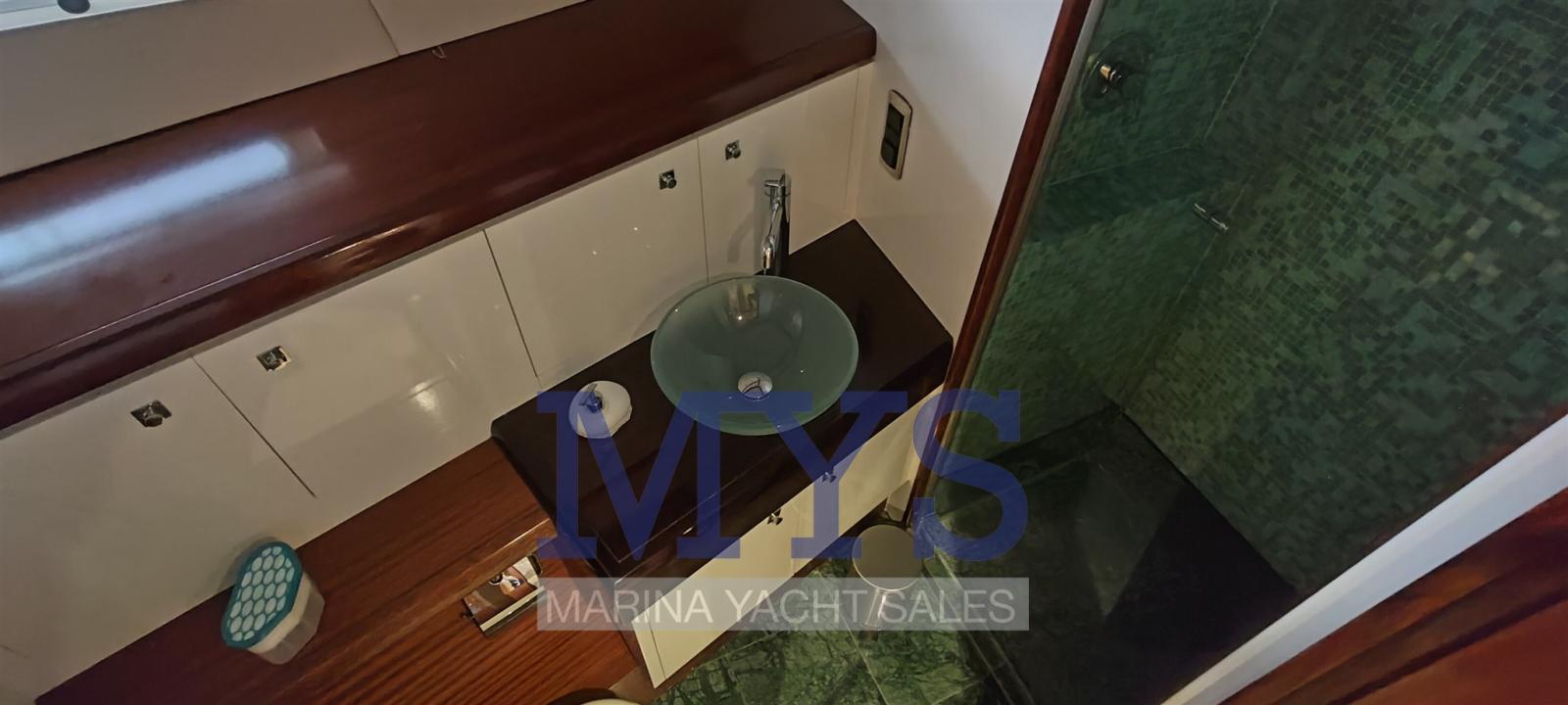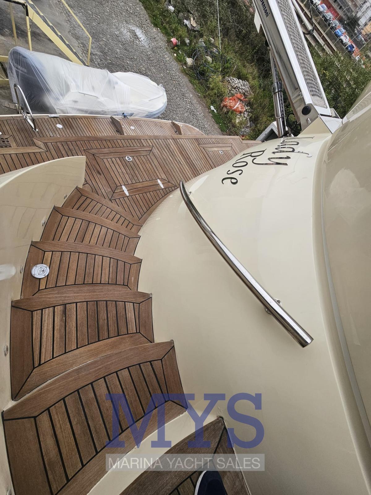 Engine Alarm, Bilge Alarm, Alternator, Water pressure pump, Teak Side Decks, Shore power cable, Safety rail, Deck Shower, Directional Spotlight, Hydraulic Flaps, Hard top, Flaps Indicators, Anchor Chain Washdown, Washbasin in the cockpit, Courtesy Lights, Underwater lights, Fenders, Gangway, Platform, Seawater Pump, Entry door, Side door, Teak Cockpit, Shorepower connector, Water harbor connector system, Electric Windlass, Gang Board, Saddles for tender, Stabilizers, cockpit table, Tender, Horn, Stern Winches.