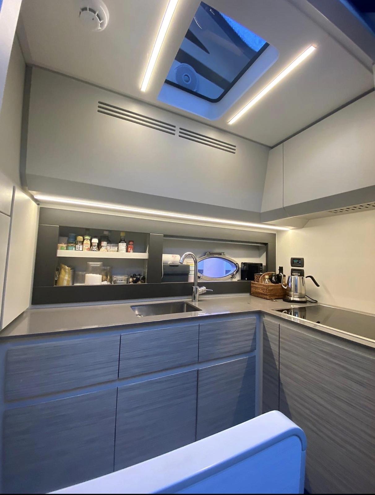 Galley, Deck Refrigerator, 2 Refrigerator, ICE Maker, Washer dryer, Dishwasher, Electric hot plate.