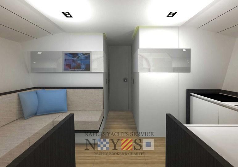 Engine Alarm, Bow Thruster (Quick SD 7047), Hydraulic Flaps, Gangway (a scomparsa), Automatic Bilge Pump, Shorepower connector, swimming ladder.