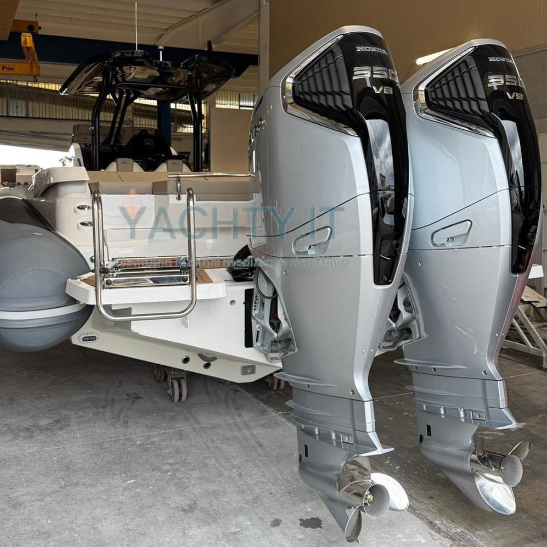 Powered by 2 x 350 hp Honda V8s, it represents the most advanced expression of the sporty maxi-RIB: high performance, stable navigation and great safety even at high speeds, combined with surprising on-board comfort.