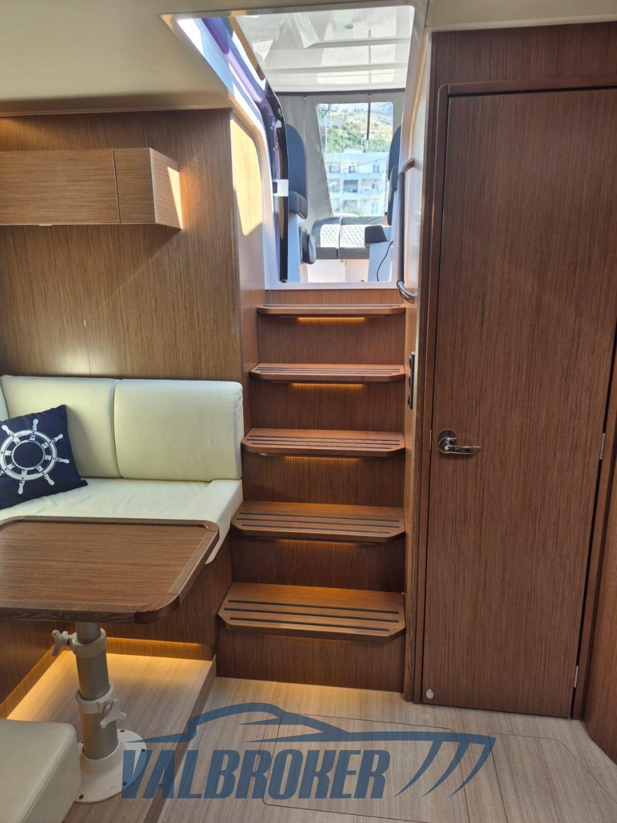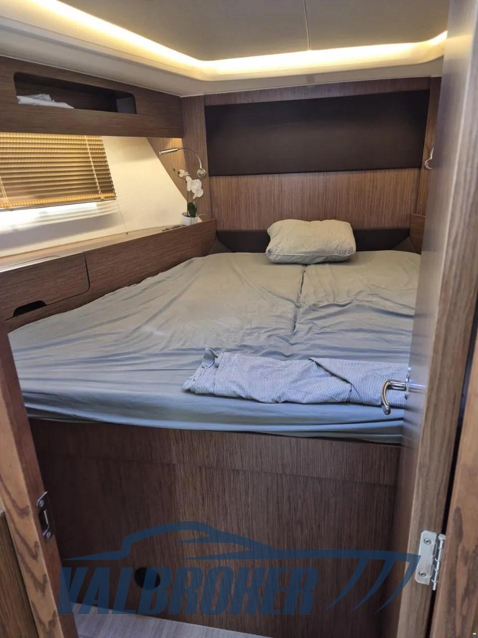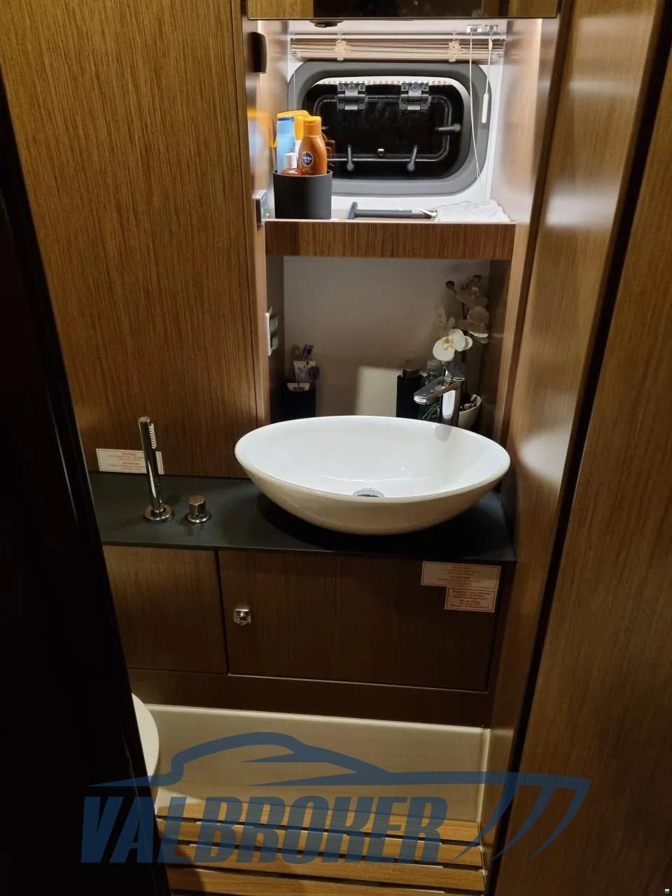 With a comfortable cockpit and a large sundeck that can be transformed into a lounge area with a table facing the sea, together with the spacious oversized platform, it is the ideal motor boat for pleasant days at sea with family and friends. Opening hard top, oversized teak platform, radar, Volvo Penta joystick, dual Simrad display, Volvo on-board computer, bow thruster, hot/cold air conditioning. Below deck it houses two cabins: full-beam aft master cabin and a VIP cabin forward. 2x Volvo Penta D6 380 common rail turbodiesel engines with few hours of operation.