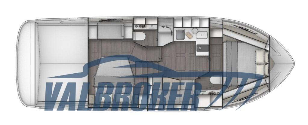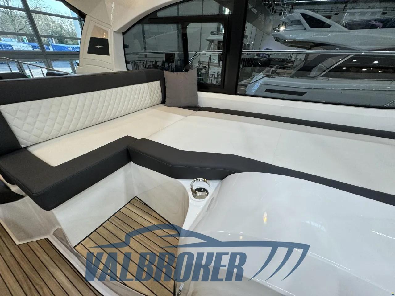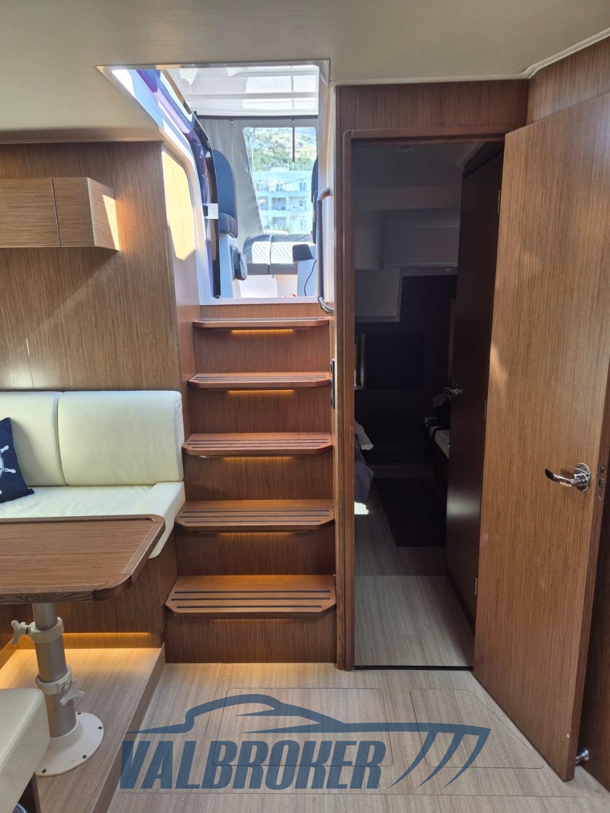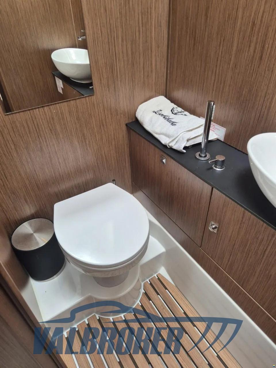 With a comfortable cockpit and a large sundeck that can be transformed into a lounge area with a table facing the sea, together with the spacious oversized platform, it is the ideal motor boat for pleasant days at sea with family and friends. Opening hard top, oversized teak platform, radar, Volvo Penta joystick, dual Simrad display, Volvo on-board computer, bow thruster, hot/cold air conditioning. Below deck it houses two cabins: full-beam aft master cabin and a VIP cabin forward. 2x Volvo Penta D6 380 common rail turbodiesel engines with few hours of operation.