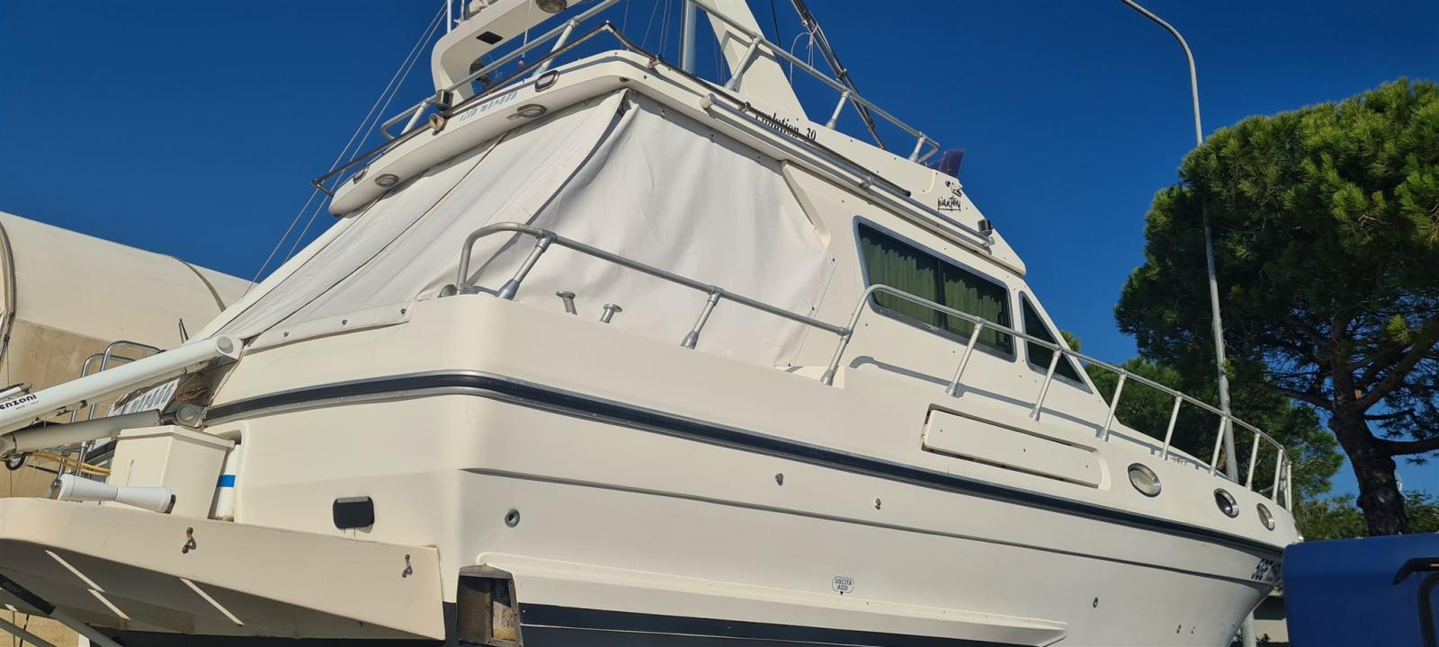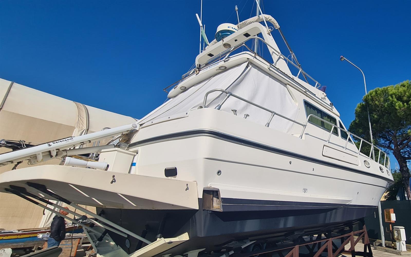 Engine Alarm, Water pressure pump, Batteries (nuove 2022), Deck Shower, Directional Spotlight, Hydraulic Flaps, Electric Crane, Flaps Indicators, Courtesy Lights, Gangway (idraulica Besenzoni), Platform, Automatic Bilge Pump, Entry door, Shorepower connector, Water harbor connector system, Voltage Rectifier, Rollbar, Electric Windlass, swimming ladder, Tender (Arimar + mercury 2,5cv), Horn.