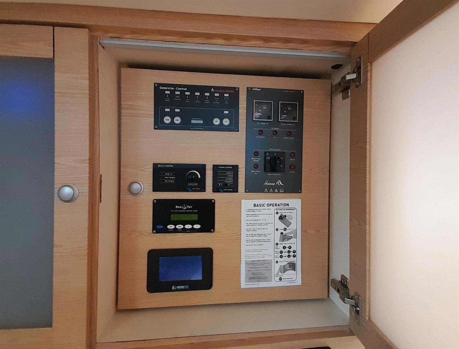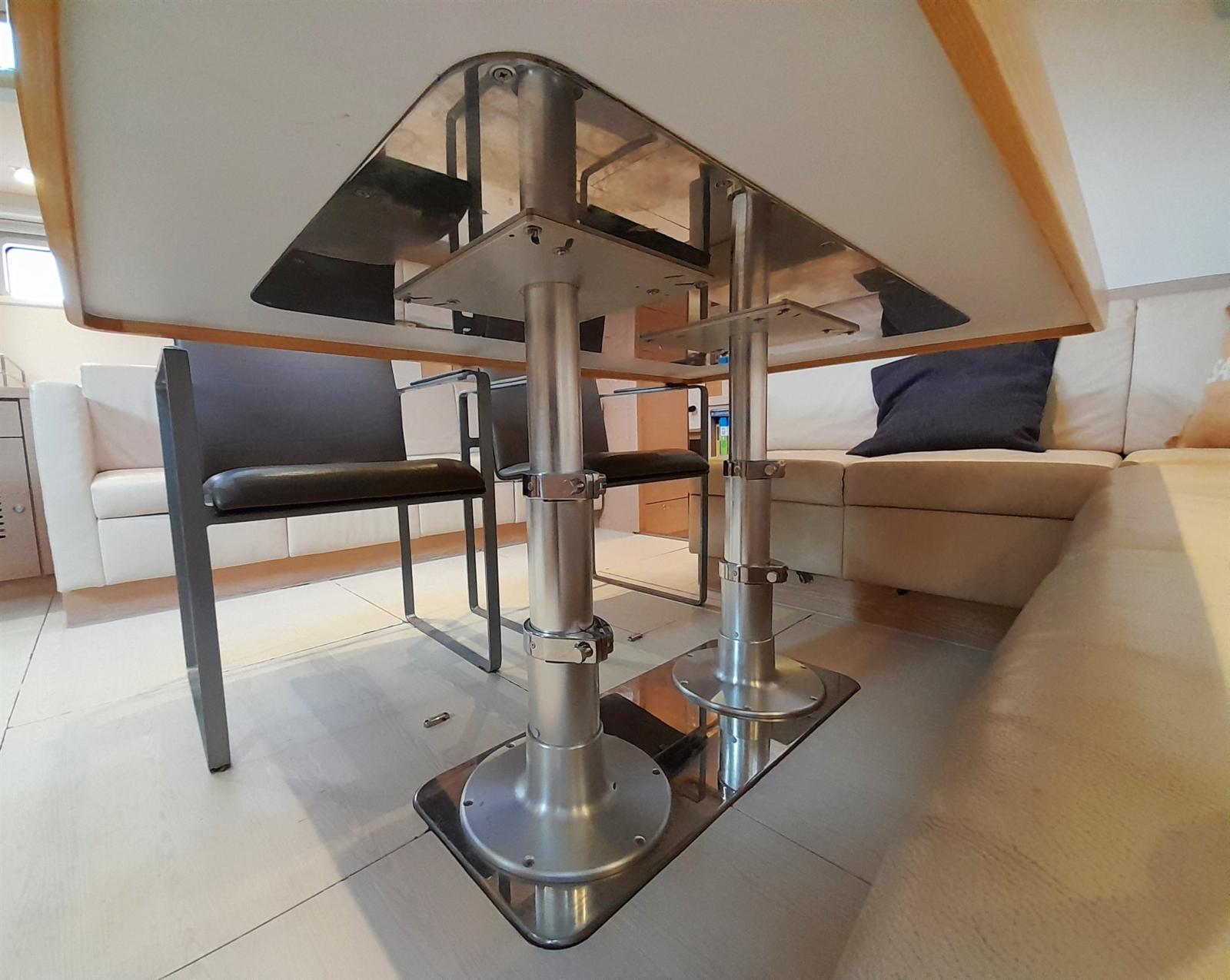 Three-seater sofa on the starboard side with cabinet with retractable TV.