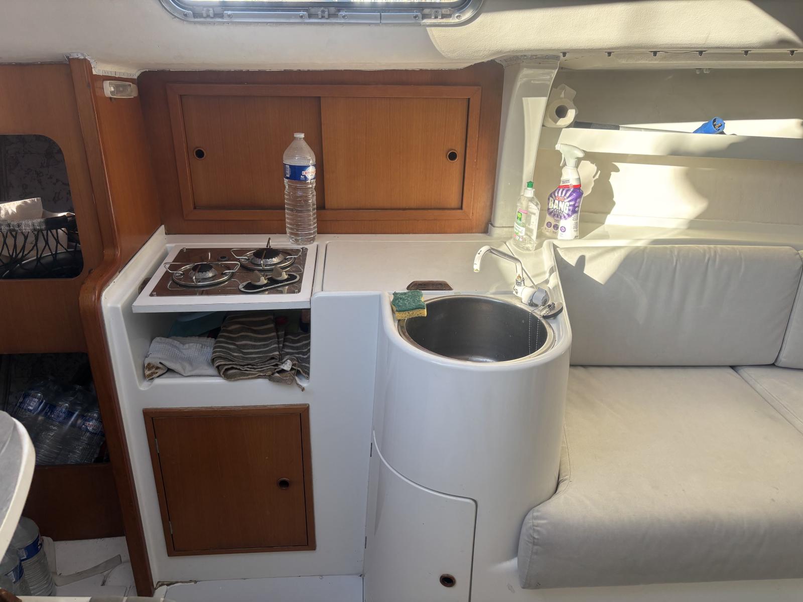 Equipped with full Raymarine electronics (GPS, ST7000 autopilot, log, depth, wind) and fixed + handheld VHF.