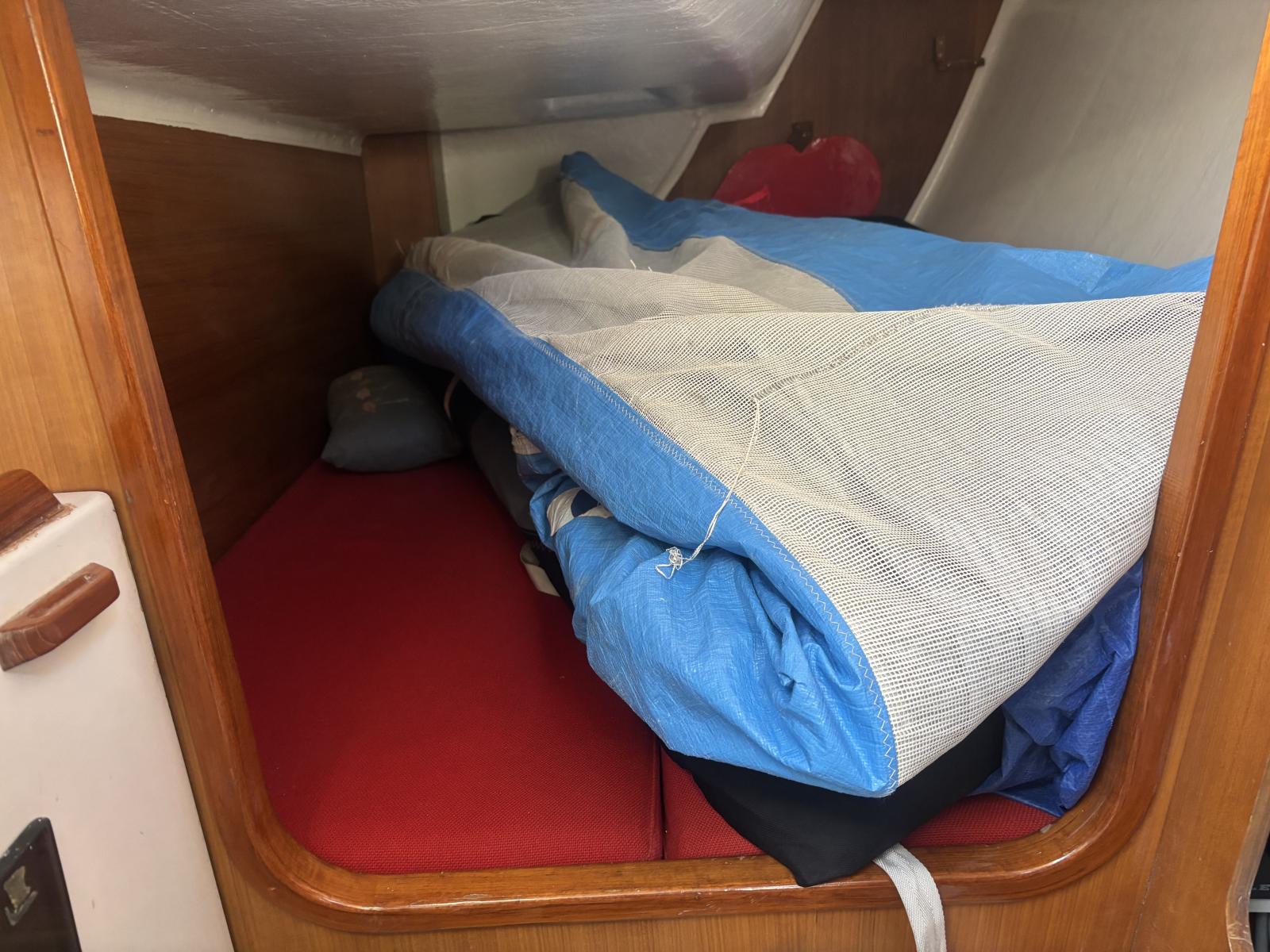 Extensive sail inventory including racing and cruising sails. Racing sails include North carbon mainsail 2023, North carbon J1 2024 (10 races), Doyle carbon J2 2024 (10 races), J3 Mylar/Kevlar 2023 used 3 times, Doyle A2 asymmetric spinnaker 2024 used approximately 15 times, A4 asymmetric spinnaker nearly new used once, symmetric spinnaker in average condition used once. Also includes a 110 m² Code Zero from 2023 used 5 times. Cruising sails include North 3DI mainsail, reefable North 3DI J2/J3 genoa and J1 genoa. Additional Italian dacron mainsail from 2023 in very good condition.