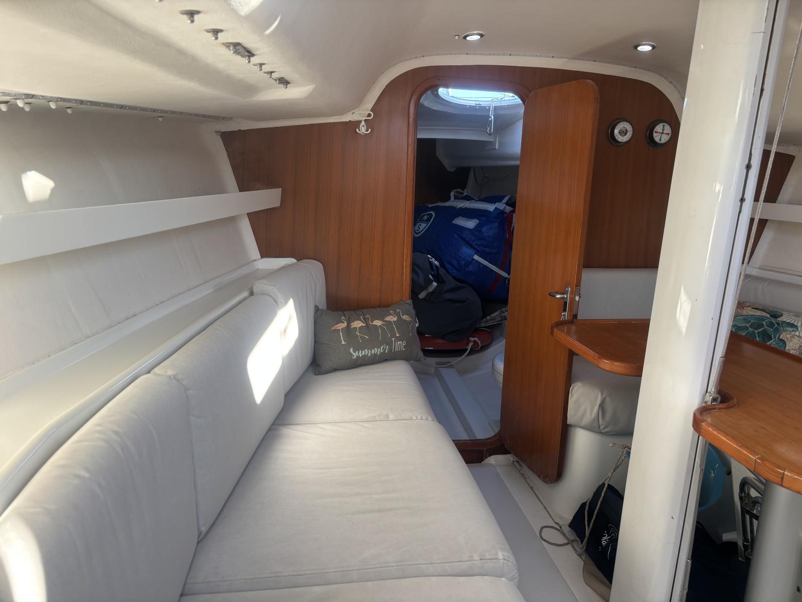 Functional interior layout designed for racing while allowing comfortable cruising with two cabins, saloon and galley. Optimized for performance and weight reduction.