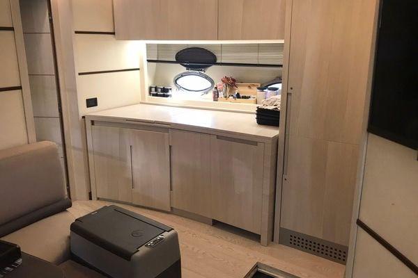 Engine Alarm, Water pressure pump, Special Colour, Deck Shower, Directional Spotlight, Hydraulic Flaps, Hard top, Flaps Indicators, Courtesy Lights, Underwater lights, Gangway, Platform, Automatic Bilge Pump, Entry door, Teak Cockpit, Shorepower connector, Water harbor connector system, Voltage Rectifier, Electric Windlass, swimming ladder, cockpit table, Horn.