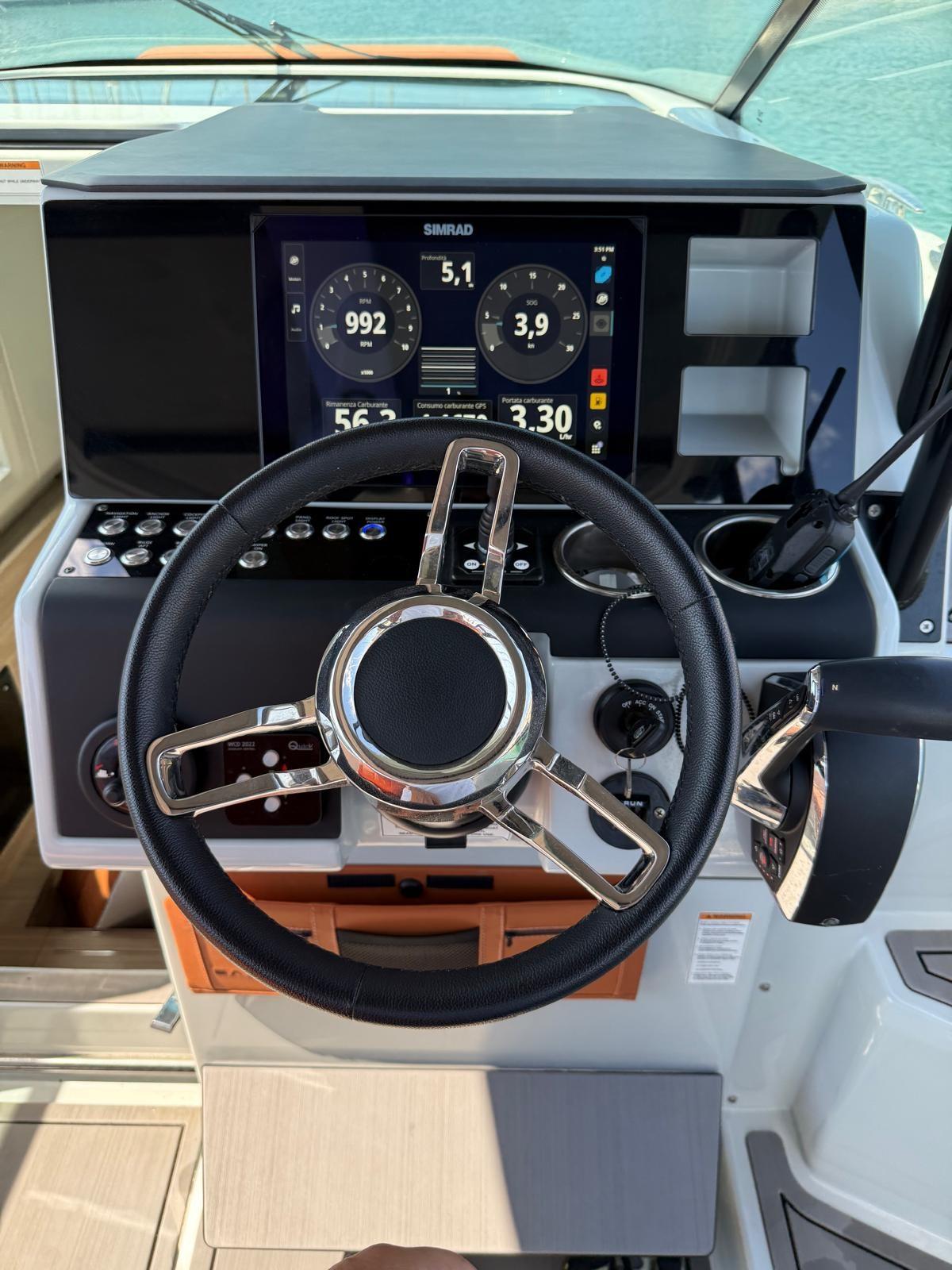 Electronic engine control, DSC vhf, Plotter with GPS antenna (Simrad 12"), Co-pilot seat.