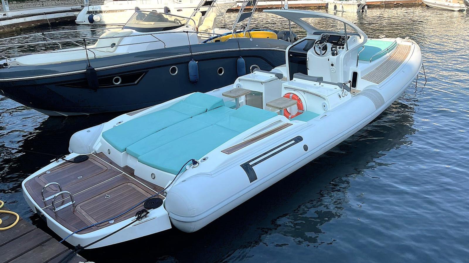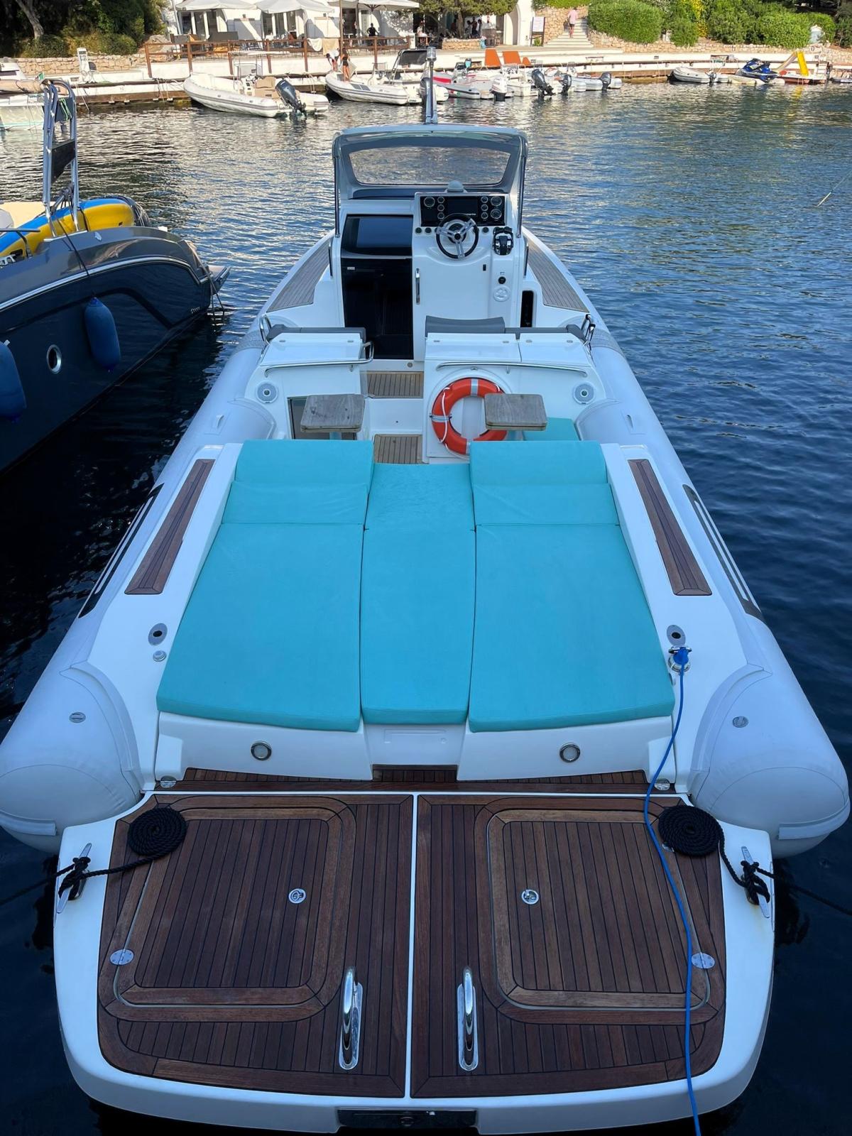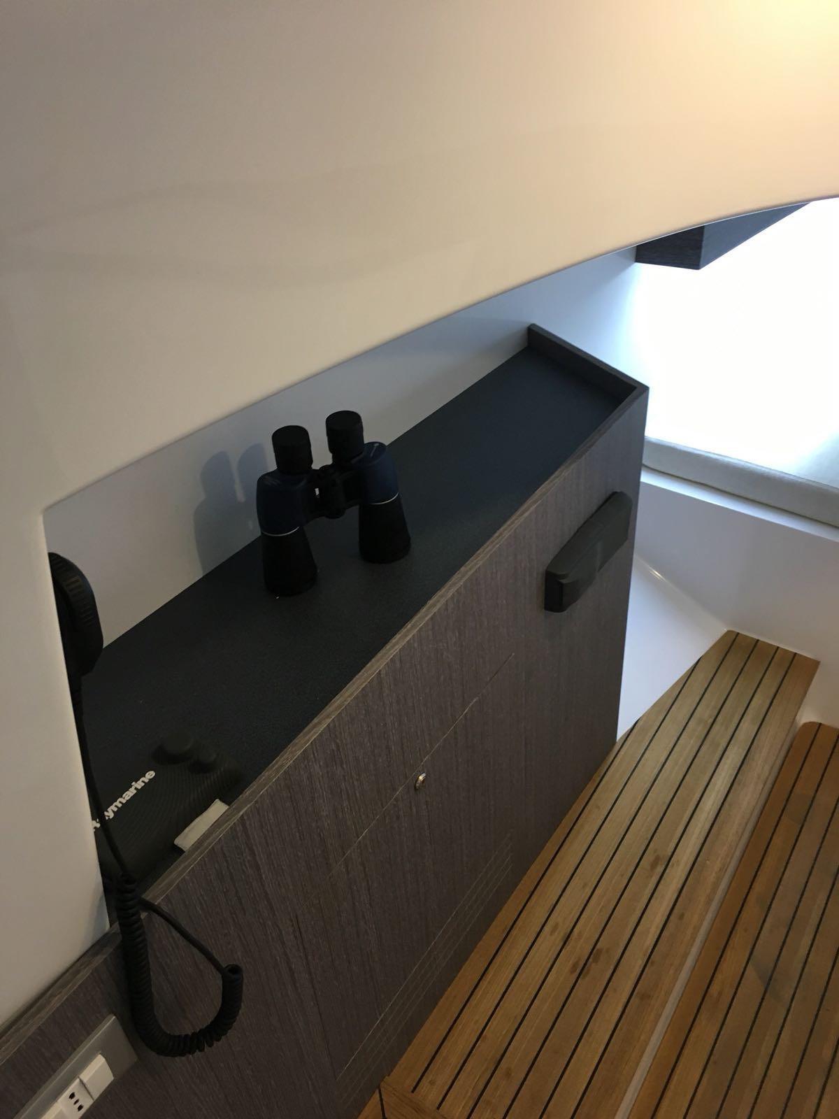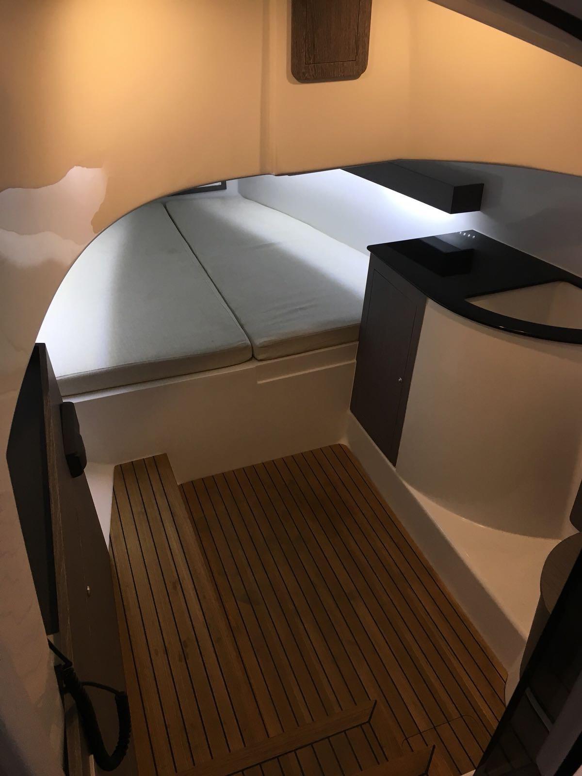 The Pirelli Pzero 1100 console with carbon hard top which leads to a large cabin with a double bed, a small wardrobe and a