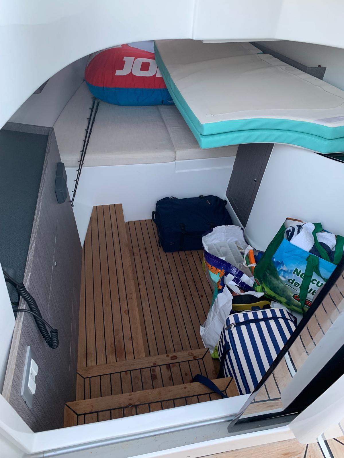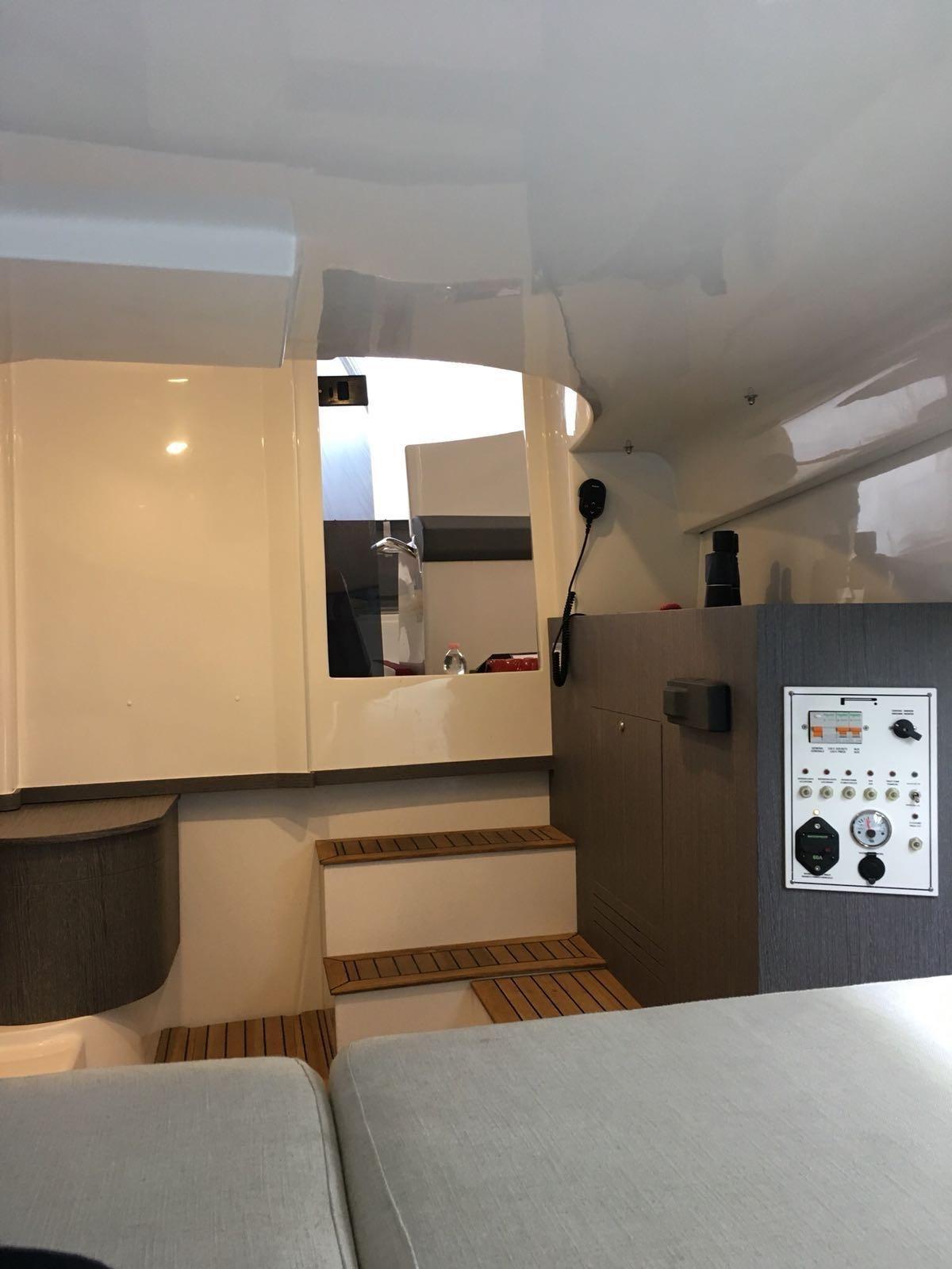 electric, autoclave with shower, stern platform and bow walkways covered in teak. Interior description cabin with double bed, one
