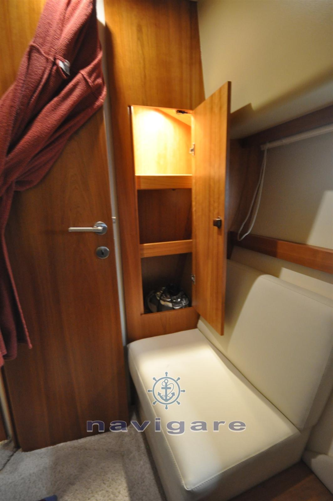 Engine Alarm, Bilge Alarm, Water pressure pump (con impianto rifatto nel 2018), Deck Shower, Hydraulic Flaps (con indicatori BENNETT), Courtesy Lights, Underwater lights (2019), Gangway, Automatic Bilge Pump, Teak Cockpit, Shorepower connector, Water harbor connector system, Electric Windlass, swimming ladder, Tender (ZAR MINI CON MOTORE 6 CV), Horn.