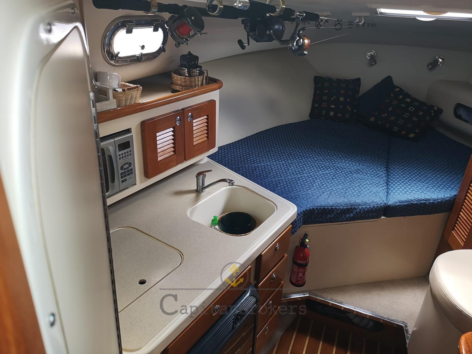 on the opposite side. The dinette towards the bow transforms into a comfortable