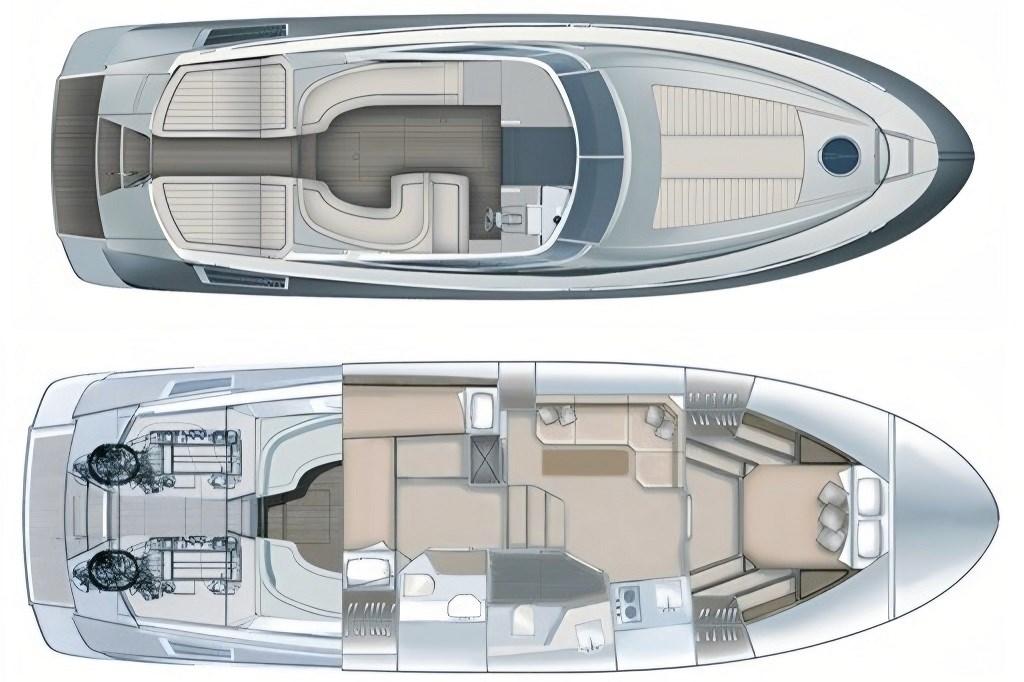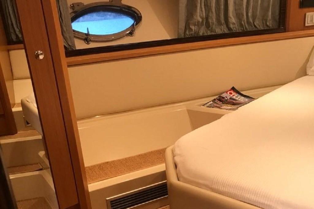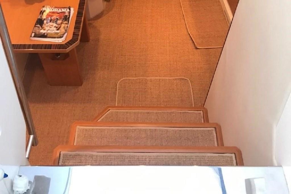 Engine Alarm, Bilge Alarm, Alternator, Water pressure pump, Shore power cable, Deck Shower, Hydraulic Flaps, Flaps Indicators, Washbasin in the cockpit, Courtesy Lights, Gangway (IDRAULICA A SCOMPARSA), Platform, Automatic Bilge Pump, Manual Bilge Pump, Teak Cockpit, Shorepower connector, Electric Windlass, swimming ladder, Horn.