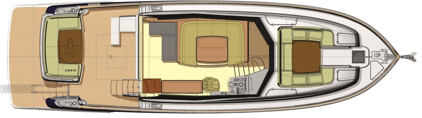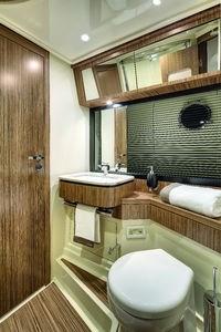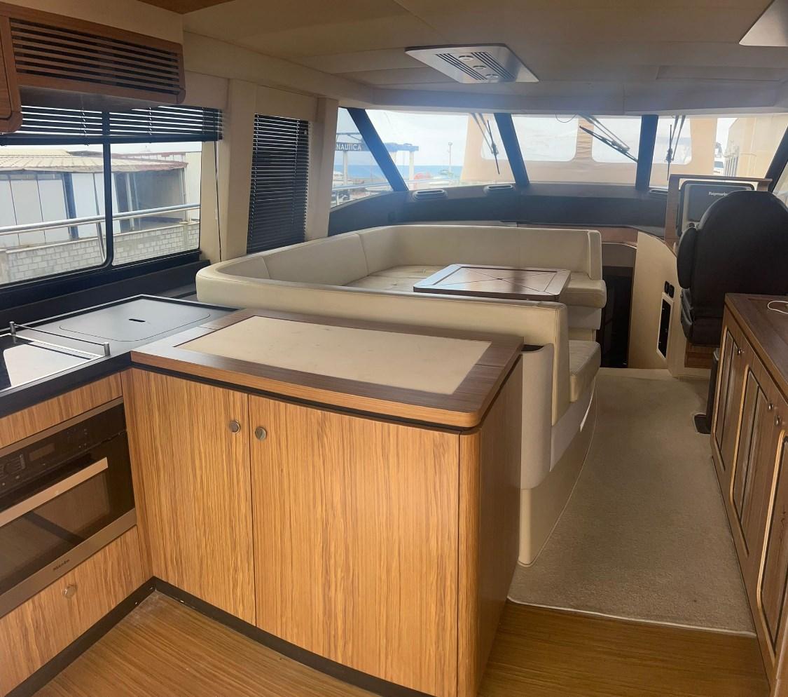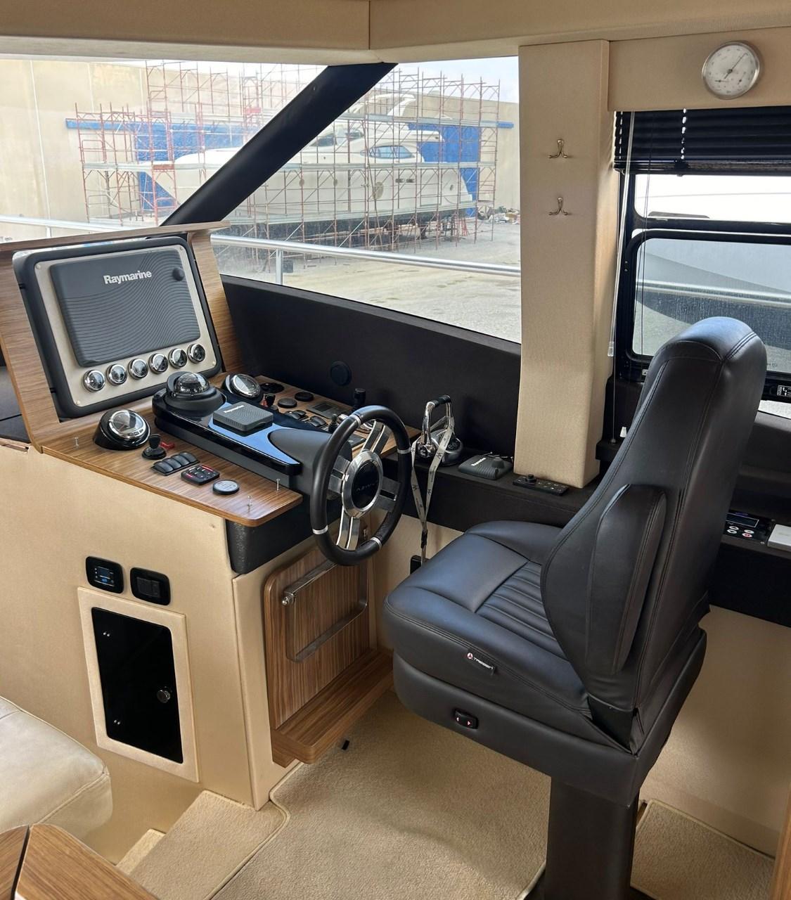Engine Alarm, Bilge Alarm, Teak Side Decks, Electric Flaps, Flaps Indicators, Courtesy Lights, Underwater lights, Gangway, Platform, Automatic Bilge Pump, Teak deck, Teak Cockpit, Stabilizers (Seakeeper), cockpit table, Living Room Foldable Table, Horn, Stern Winches.