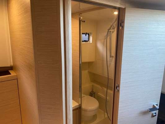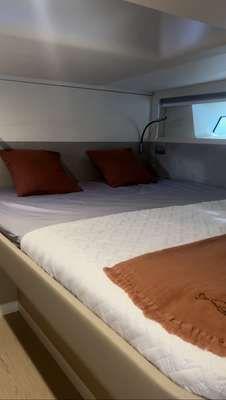 Below deck, you will find a cabin with a large double bed, a second cabin with two single beds and a bathroom with toilet.