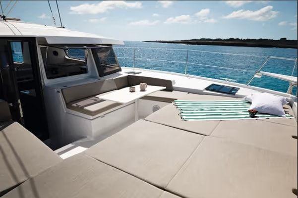 THE BALI 4.2 IS EQUIPPED WITH A *DIRECT ACCESS* BETWEEN THE KITCHEN AND THE *FRONT DECK* OF THE BOAT, A *FLYBRIDGE* AND OF COURSE THE *BALI OPEN SPACE.*