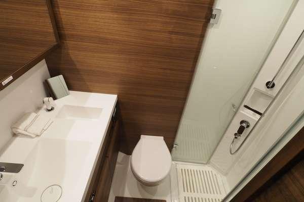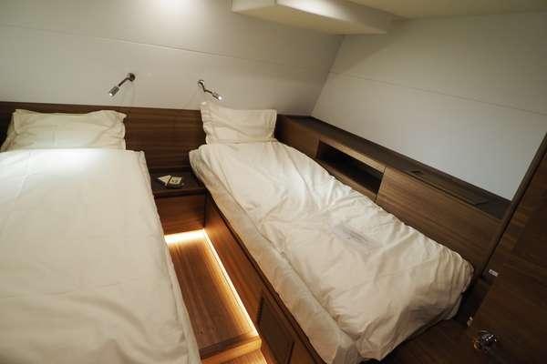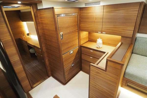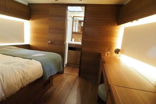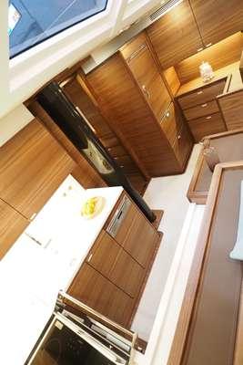 Like all Solaris, the construction of the 64 RS is impeccable: composite bulkheads laminated to the hull and deck to create a monobloc effect, great mastery of infused composite.
