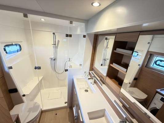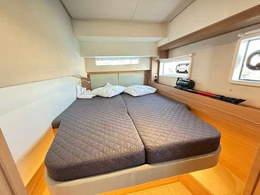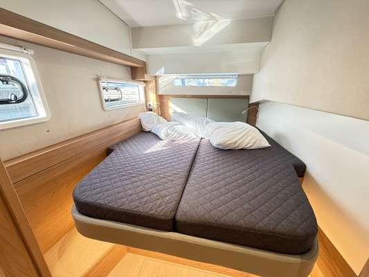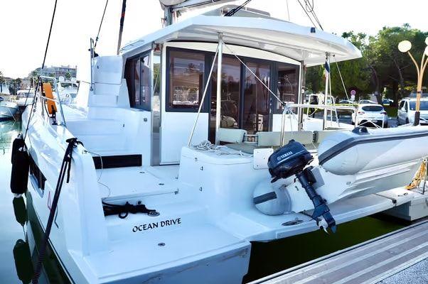 This Bali catamaran is equipped for optimal comfort while sailing. It includes a fully battened mainsail and a reinforced solent in Dacron, complete rigging for a Code 0 with an additional winch. Powered by two Nanni 50 HP engines, it also features a generator, solar panels (400W), and reversible air conditioning. The equipment includes a watermaker, electric toilets, dishwasher, and washing machine. For leisure, it offers 2 sunbathing areas, a gas plancha, and a state-of-the-art Raymarine electronic system. We guarantee the berth.