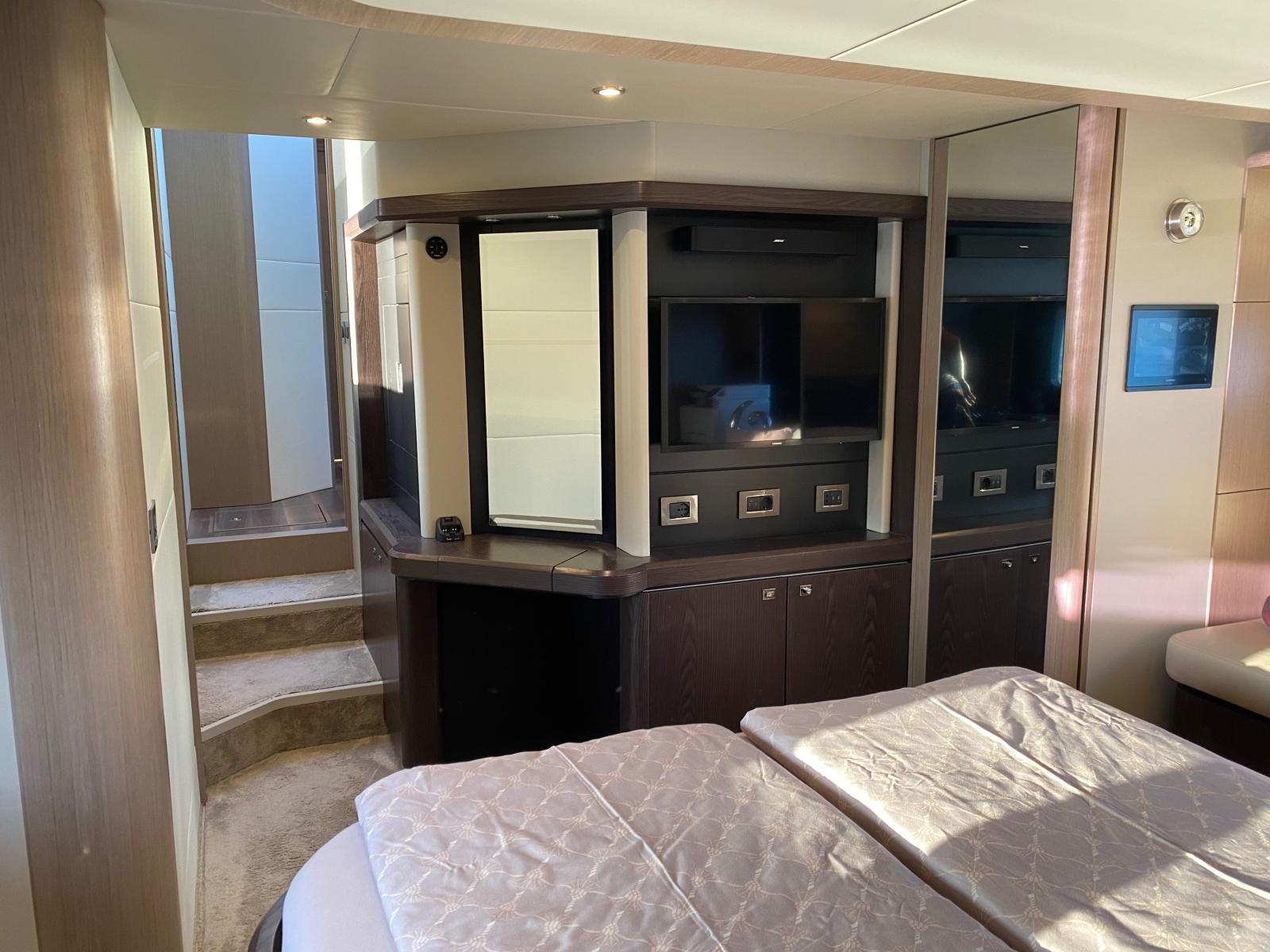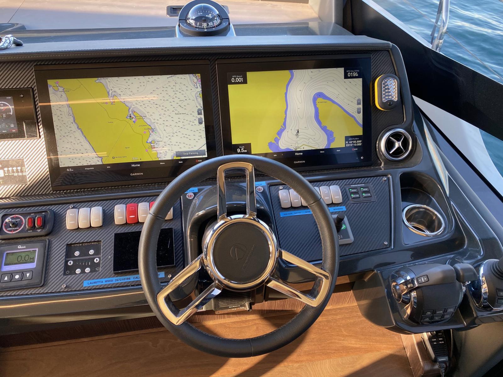 Very well equipped model: Seakeeper 9, 180 l/h watermaker, Yacht Controller, Volvo DPS, third joystick control station, satellite TV antenna, hydraulic bathing platform.