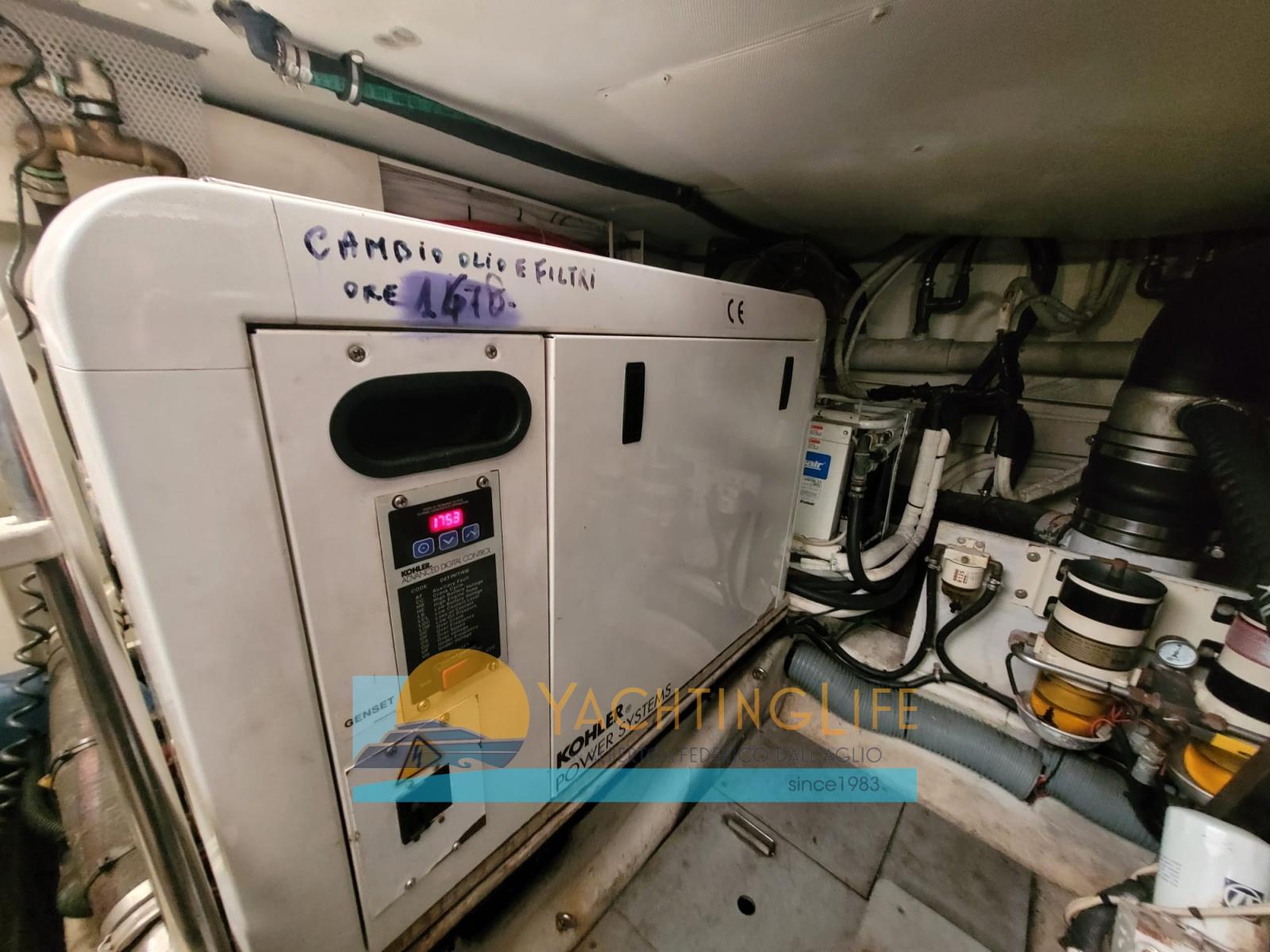 Engine Alarm, Bilge Alarm, Water pressure pump, Life Raft (da revisionare), Deck Shower, Twin Steering, Hydraulic Flaps, Davits for tender on fly, Fire Extinguishing System, Flaps Indicators, Courtesy Lights, Gangway (idraulica portata 250kg), Platform, Automatic Bilge Pump, Teak Cockpit, Shorepower connector, Electric Windlass, swimming ladder, Saddles for tender, cockpit table, Tender (Novurania 320 e motore 20hp), Horn, 2 Stern Winches.