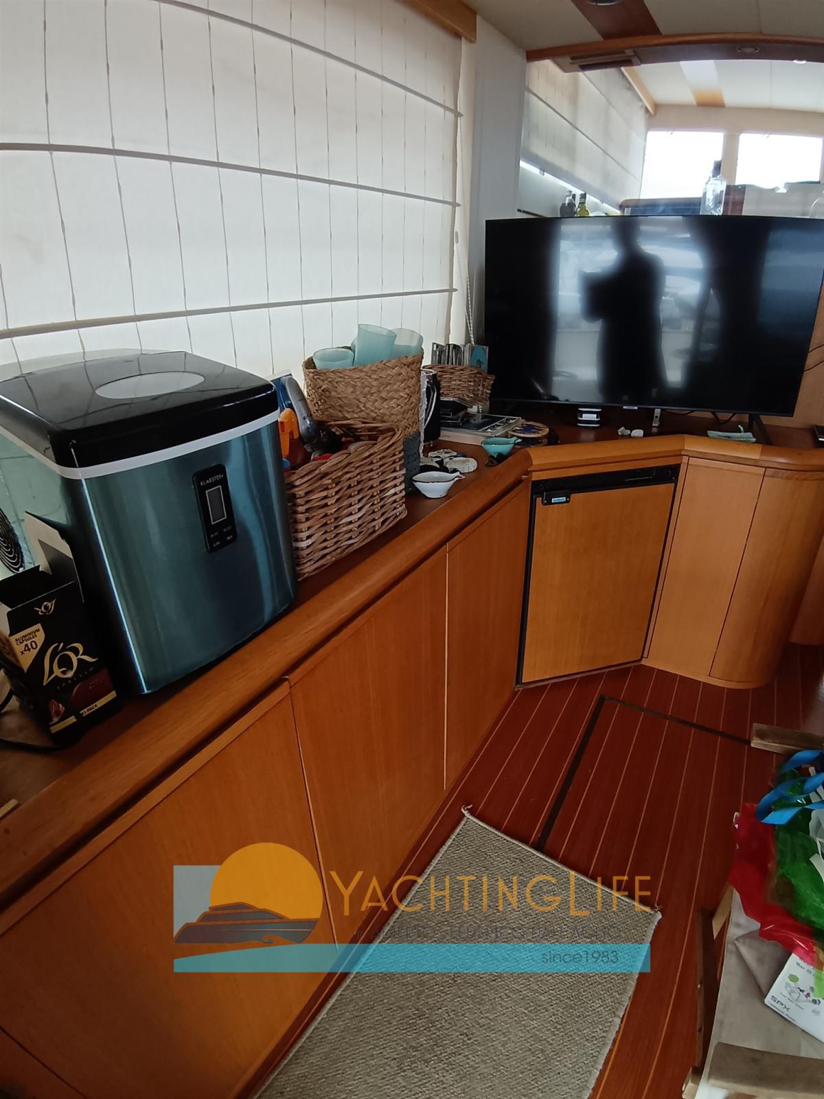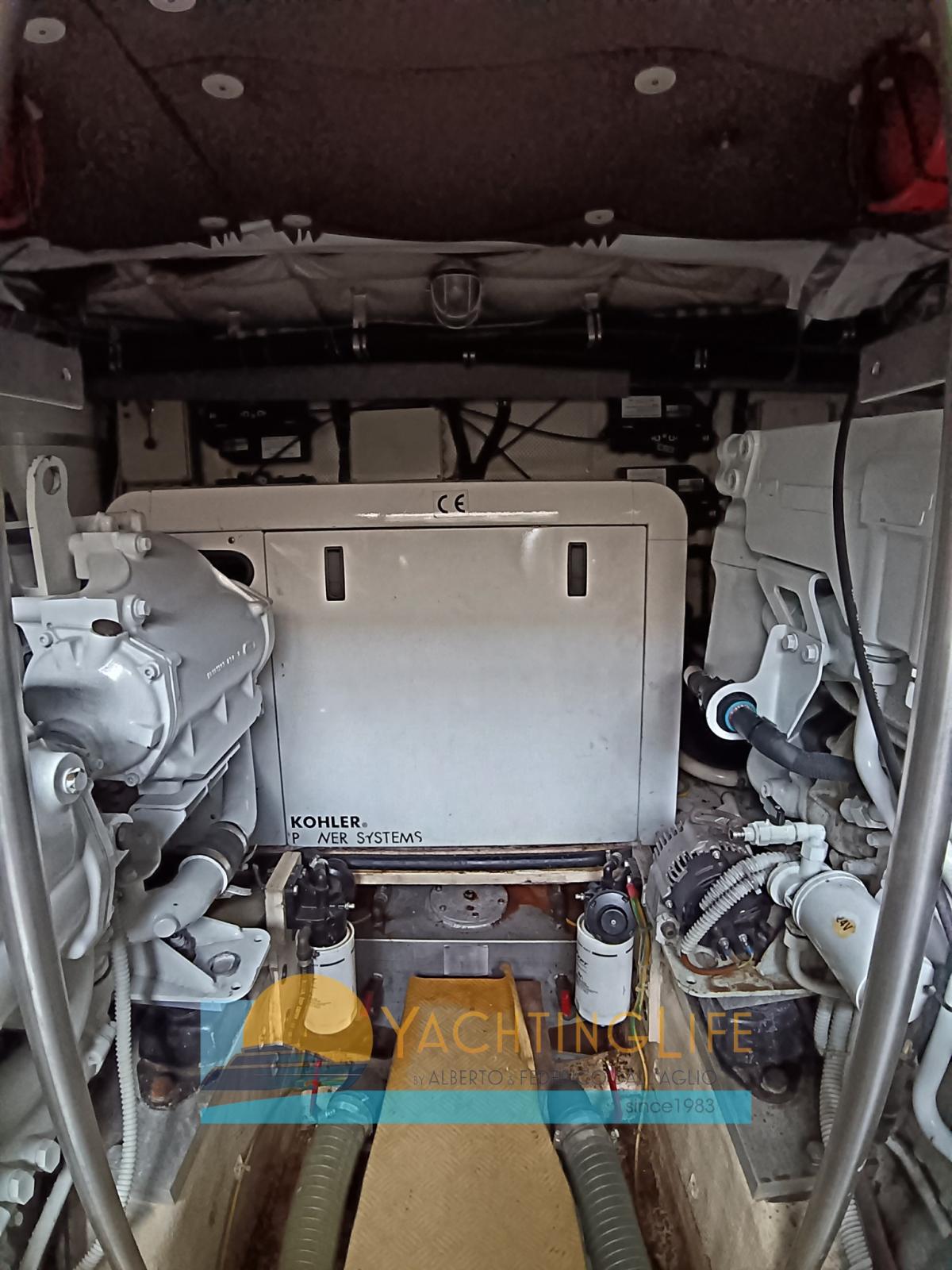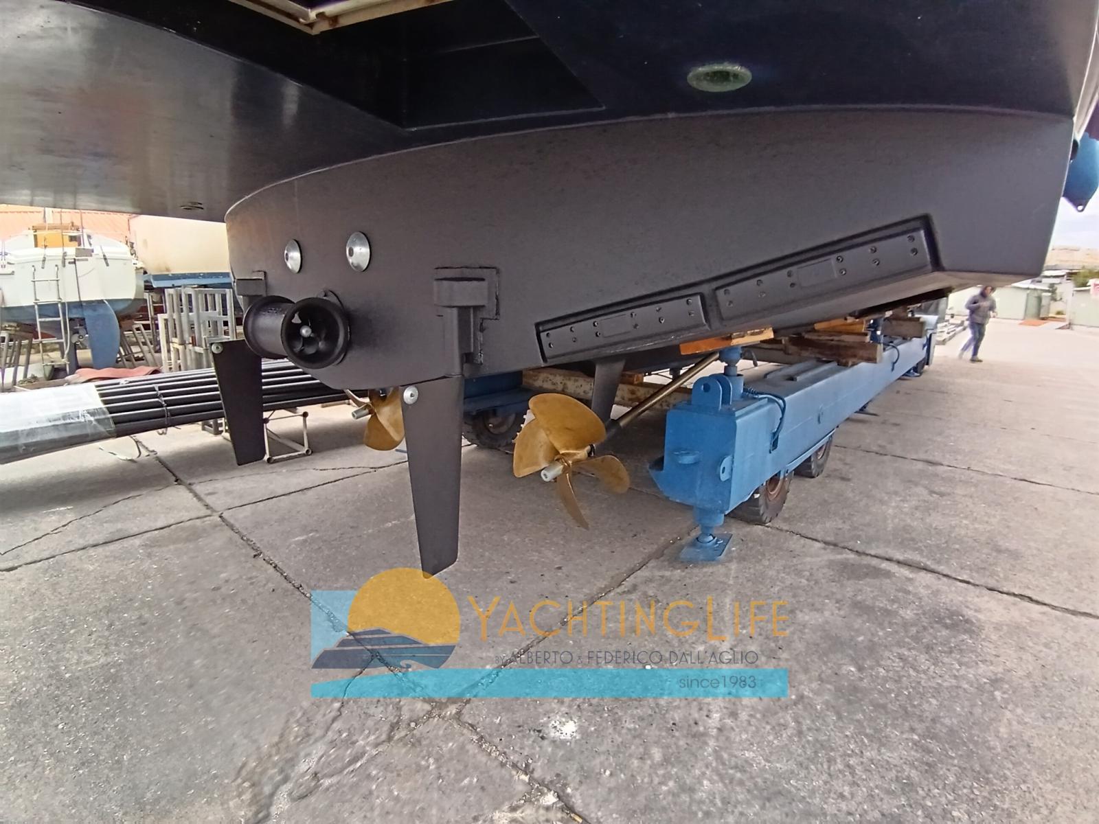 Bilge Alarm, Anchor (E 100mt di catena), Water pressure pump, 5 Batteries, 2 Battery charger, Deck Shower, Twin Steering, Electric Flaps, Tender Crane, Fire Extinguishing System, Flaps Indicators, Courtesy Lights, Gangway (idraulica), Platform (in teak 2023), Entry door, Side door, Teak Cockpit, Shorepower connector, Electric Windlass, swimming ladder, Saddles for tender, cockpit table, Tender (e motore fuoribordo), Horn, Stern Winches.