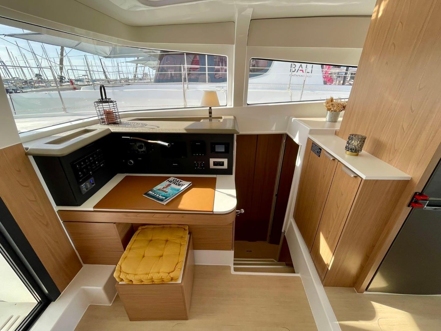 Additional InformationBali 4.2100% D’INNOVATION ET DE CONFORT !Le BALI 4.2 présente toutes les innovations signées BALI CATAMARANS. En plus de l’incontournable « ouverture BALI », il possède un accès direct entre la cuisine et l’avant du bateau par une porte étanche, sans passer par les extérieurs. Les différents espaces de détente situés sur le flybridge et le cockpit avant rigide, offrent des bains de soleil confortables, invitant au farniente et à la relaxation.