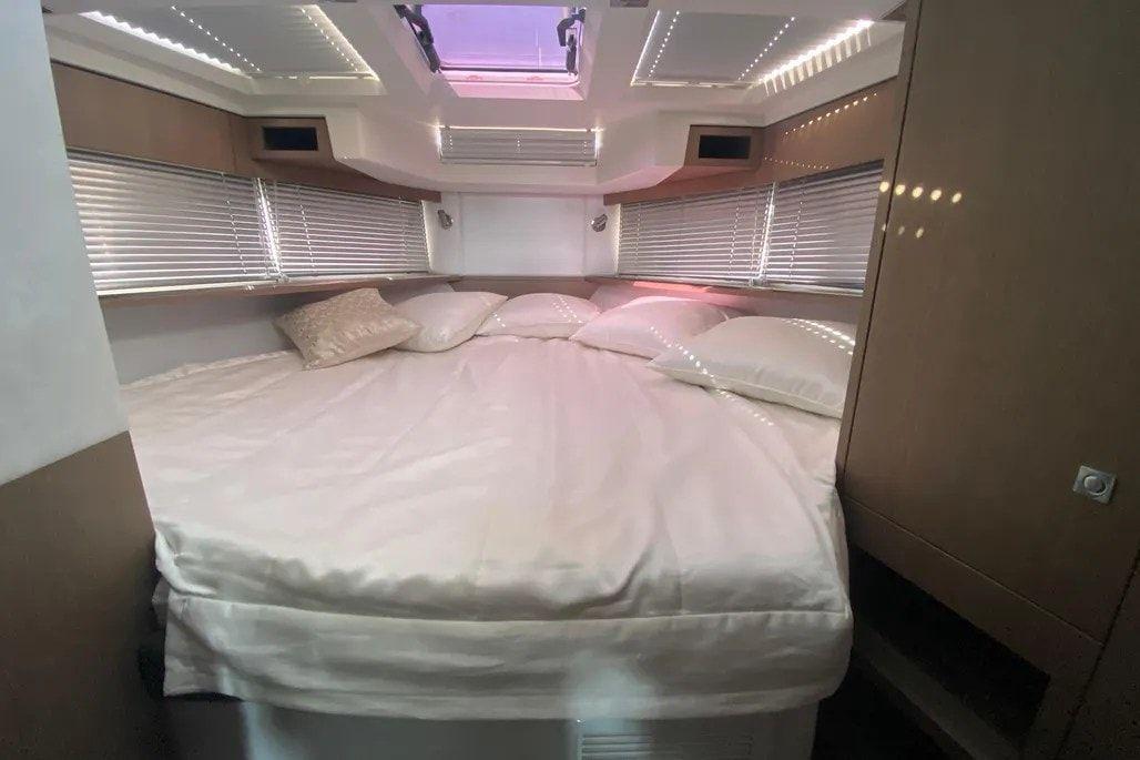 This nearly 38-foot vessel will impress you with its plethora of high-quality features, a living room flooded with natural light due to its profiled windows, and top-notch performance. Surrender to the comfort of its three double cabins that lead to a beautiful, fully equipped bathroom.