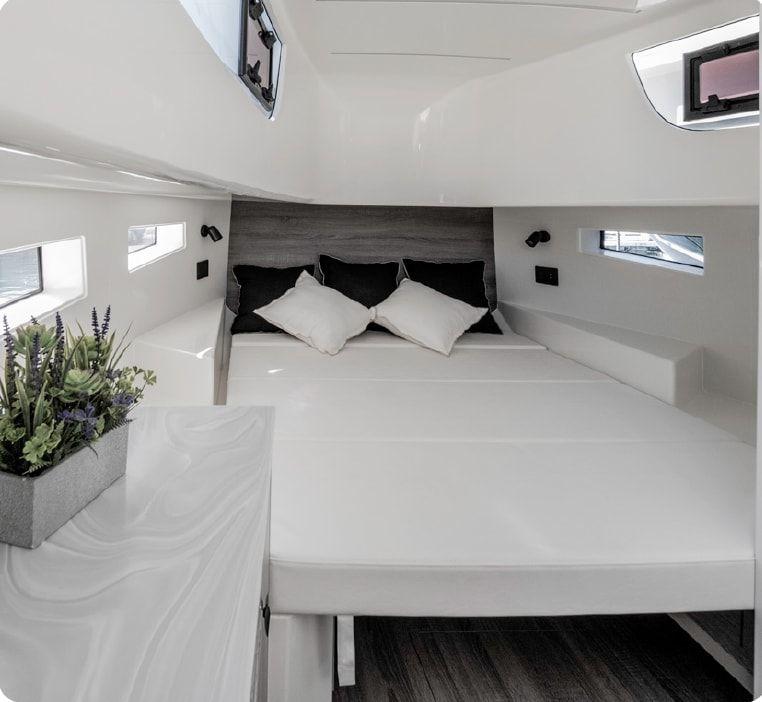 The Kumbra 36 is a luxury day boat introduced by Kumbra Yachts in 2025. Designed to combine elegance and functionality, it offers a modern aesthetic and a comfortable onboard experience. Exterior: The Kumbra 36 features two sunbathing areas, a dinette that seats six, three helm seats, and a spacious swim platform with a comfortable swim ladder. Interior: The interior includes two guest cabins and a bathroom, designed to maximize space and comfort.