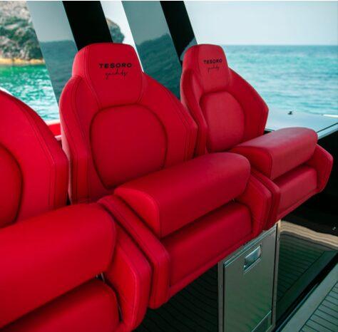 The Tesoro T40 IB Black Series stands out with its bold style and striking red cushions, harmoniously combining design with exceptional comfort. This 2023 model offers vast outdoor spaces and a surprisingly spacious interior, with a convertible main lounge, a large central cabin and a full bathroom for ultimate comfort.