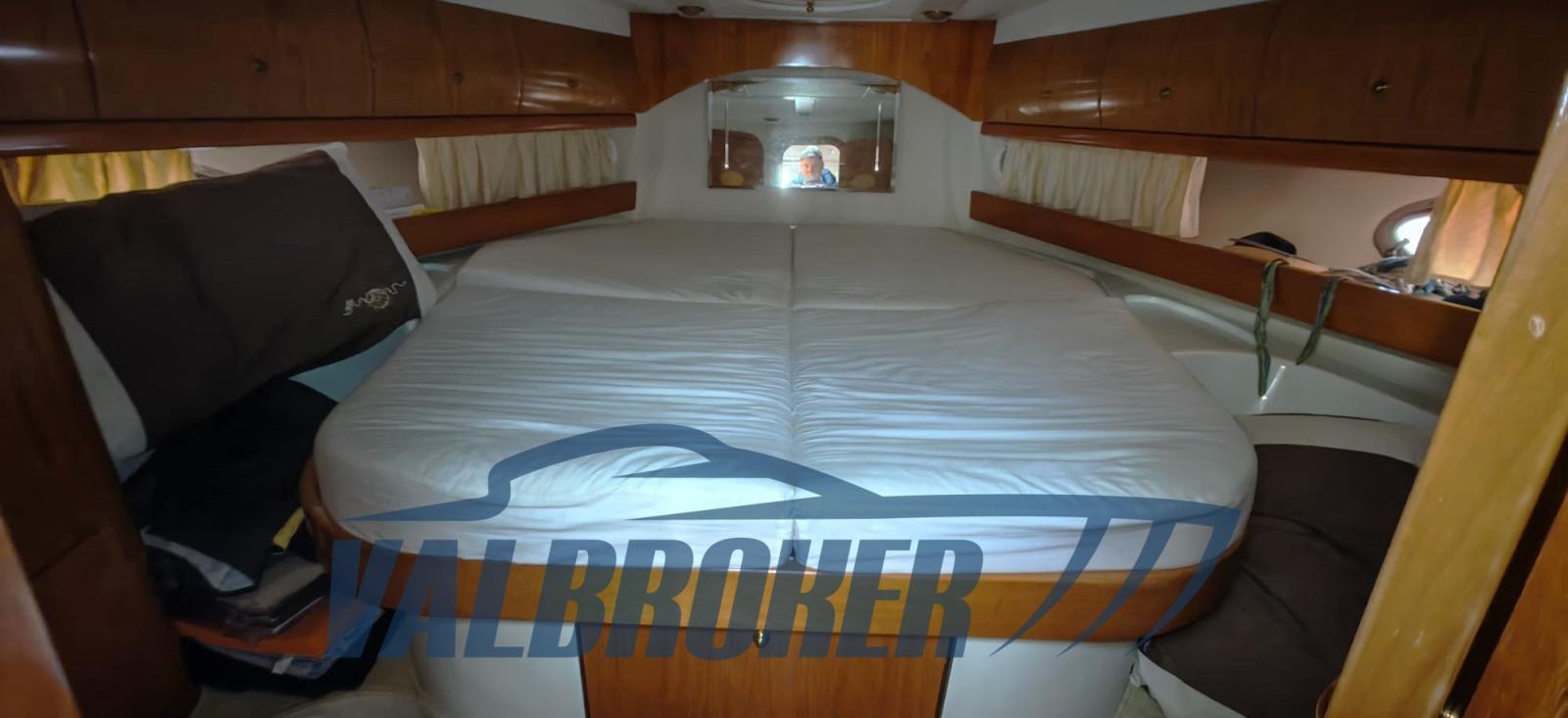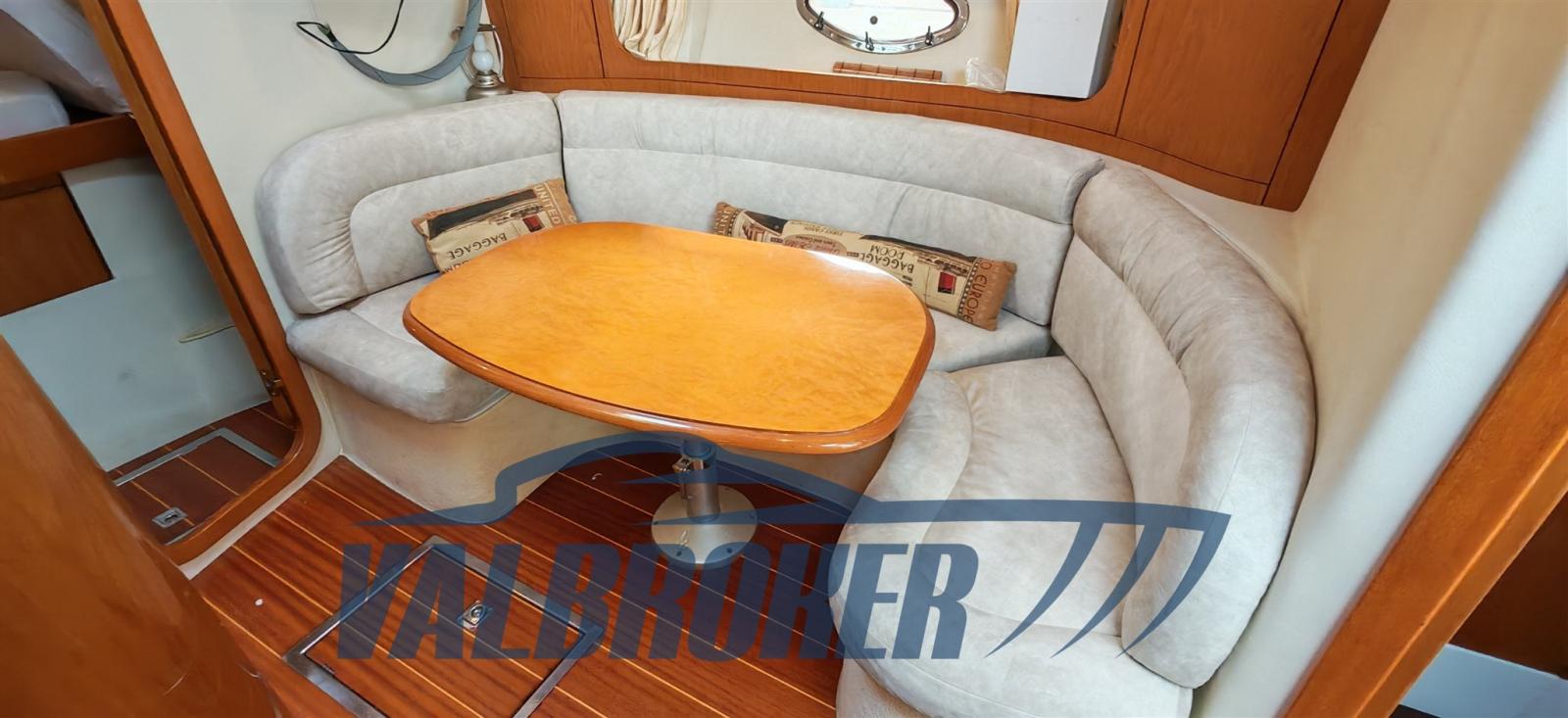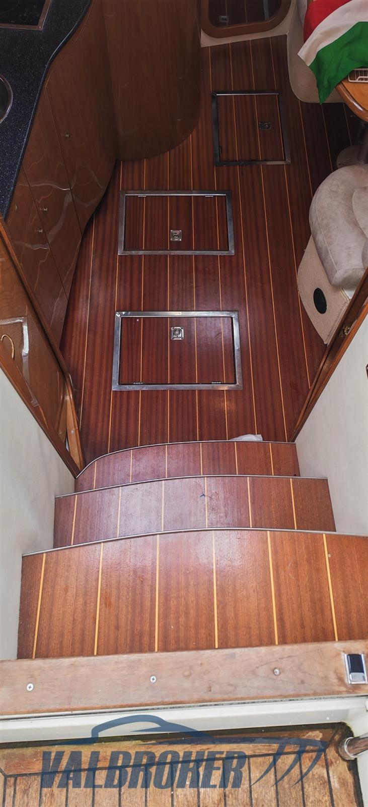 Open view of Lake Maggiore with two double cabins and two bathrooms. Powered by 2x Volvo Penta D4. FULL OPTIONAL: Hydraulic gangway, Mase generator, extended swim platform, Vetus bow thruster, remote control headlight, Quick chain counter, Raymarine autopilot, teak cockpit, Webasto heating. March 2026: preventive anti-osmosis treatment, removal of old antifouling layers, hull brought to zero with sandblasting, complete Stoppani-Lechler cycle, no. 8 coats of epoxy resin and antifouling application on hull and transmissions.