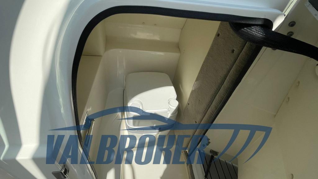 Fixed sundeck at the stern, synthetic teak (maintenance-free) comfortable seats, internal chemical toilet, electric engine compartment opening, wakeboard door. 2025 new upholstery. Completely refitted.