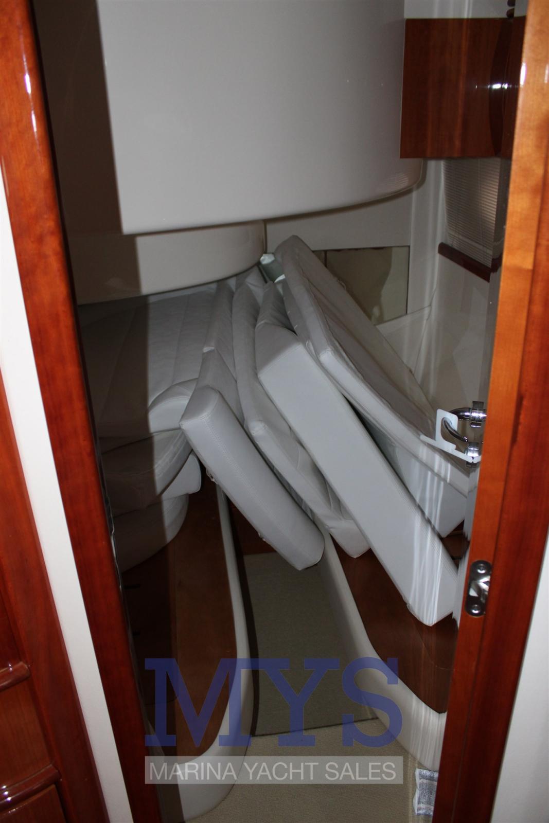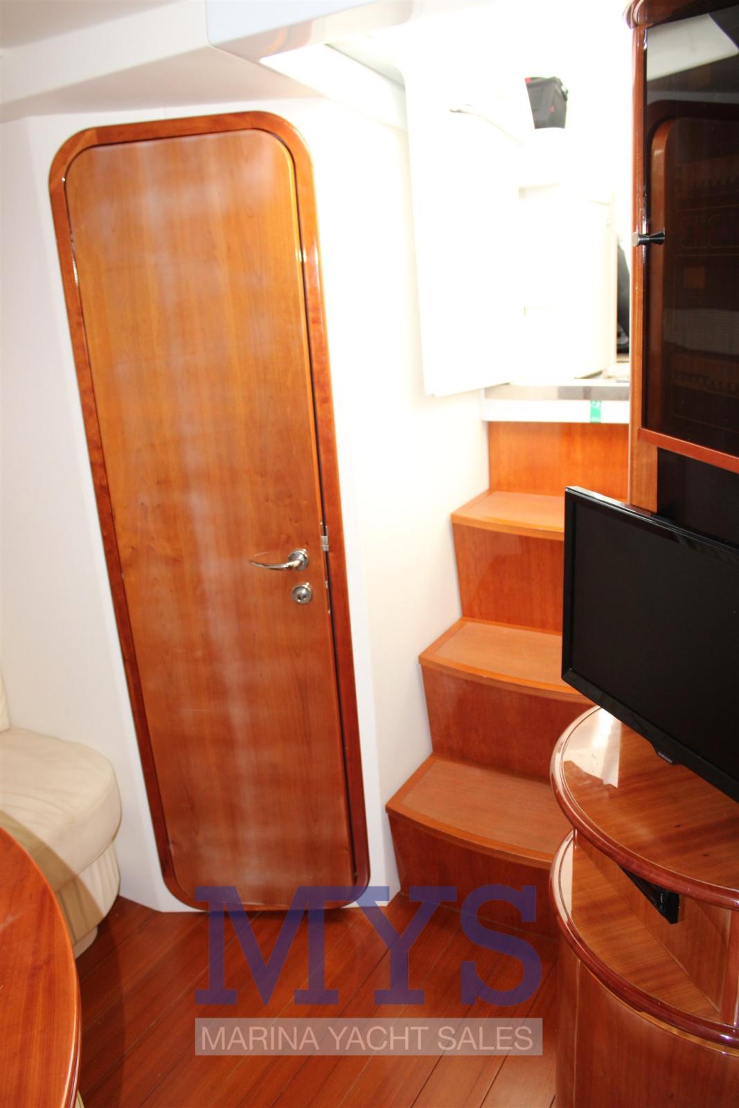 Engine Alarm, Water pressure pump, Deck Shower, Hydraulic Flaps, Hard top, Fire Extinguishing System, Flaps Indicators, Washbasin in the cockpit, Courtesy Lights, Underwater lights, Gangway, Platform, Automatic Bilge Pump, Teak Cockpit, Shorepower connector, Water harbor connector system, Electric Windlass, swimming ladder, cockpit table, Horn.