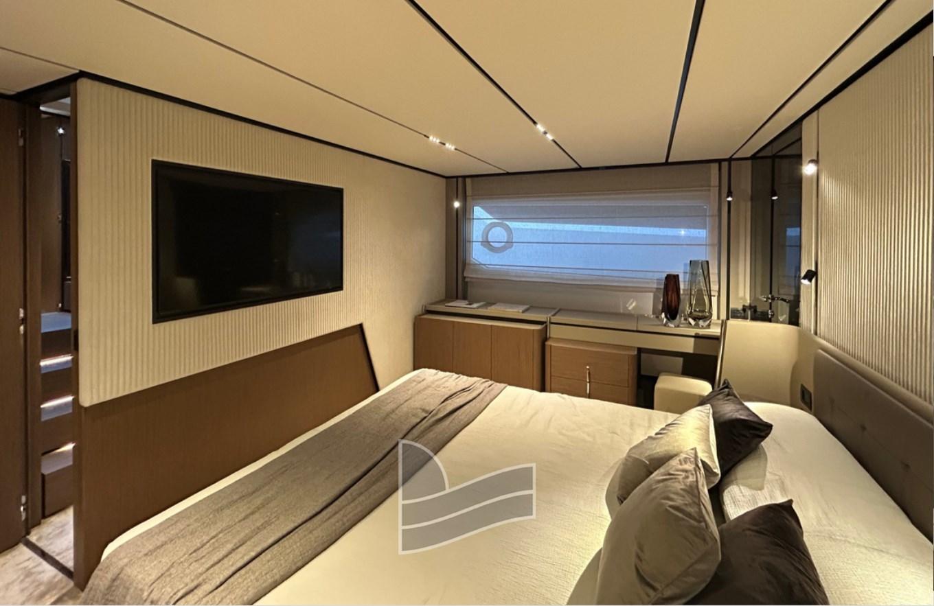 Full-beam master cabin: a large, bright and quiet space, positioned in the center of the hull to maximize stability and comfort. The en suite bathroom and the refined finishes contribute to creating an intimate and sophisticated environment.