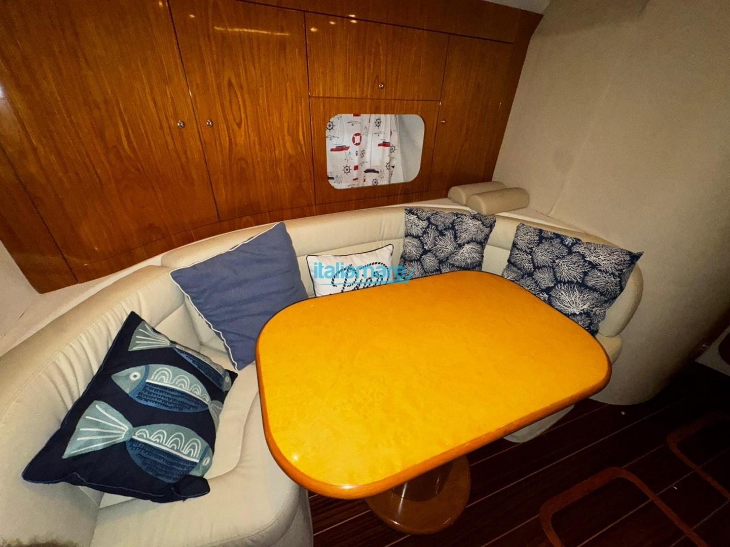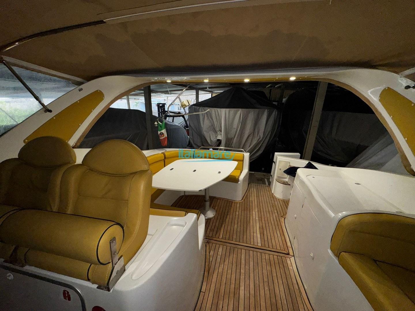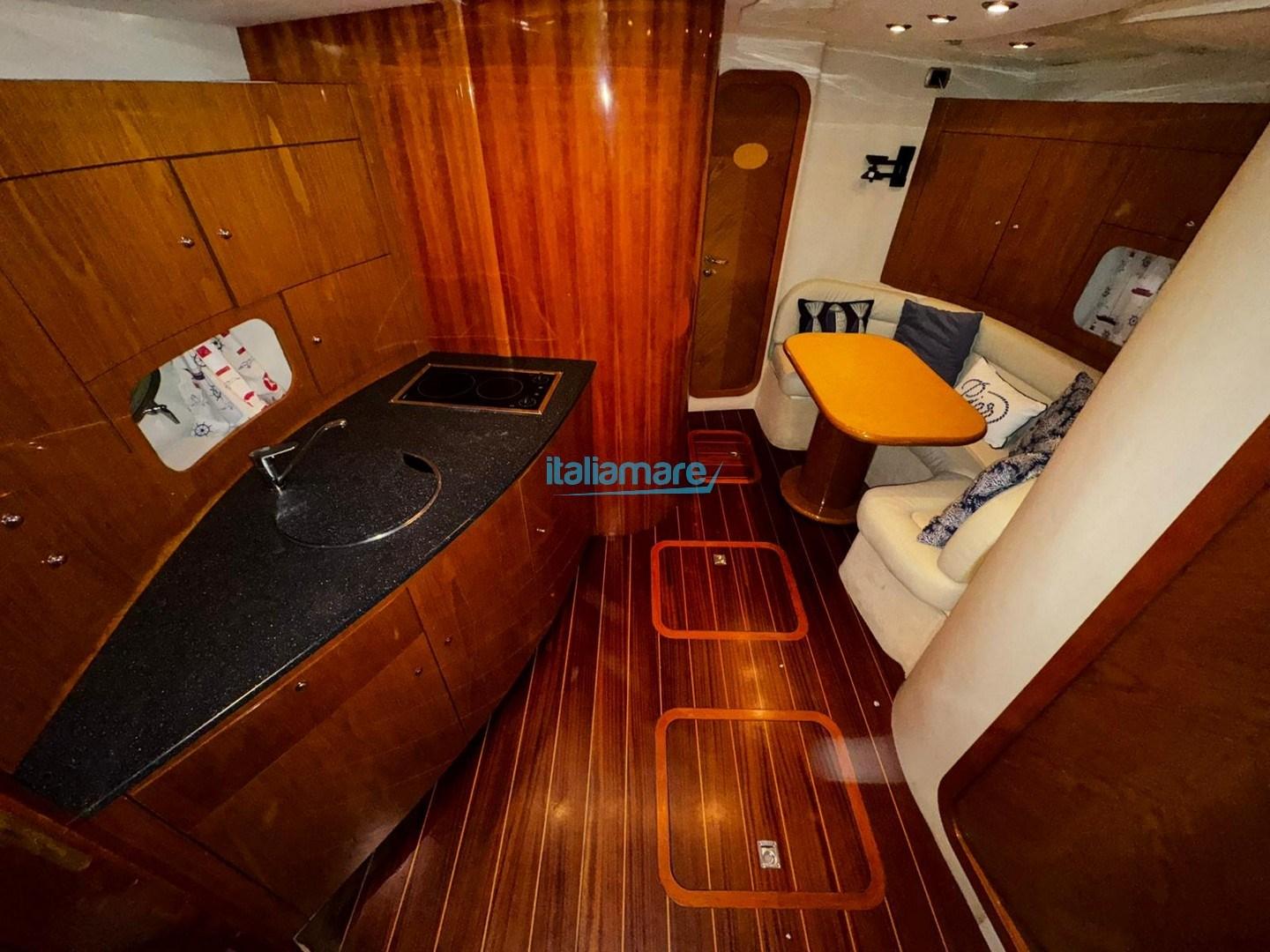 The Innovations and Projects Mira 43 is an iconic Italian open with a sleek profile and an extremely spacious cockpit, the true beating heart of the boat, equipped with a large U-shaped sofa, a table that can be transformed into a sundeck and an outdoor bar cabinet that makes outdoor life fluid and convivial.