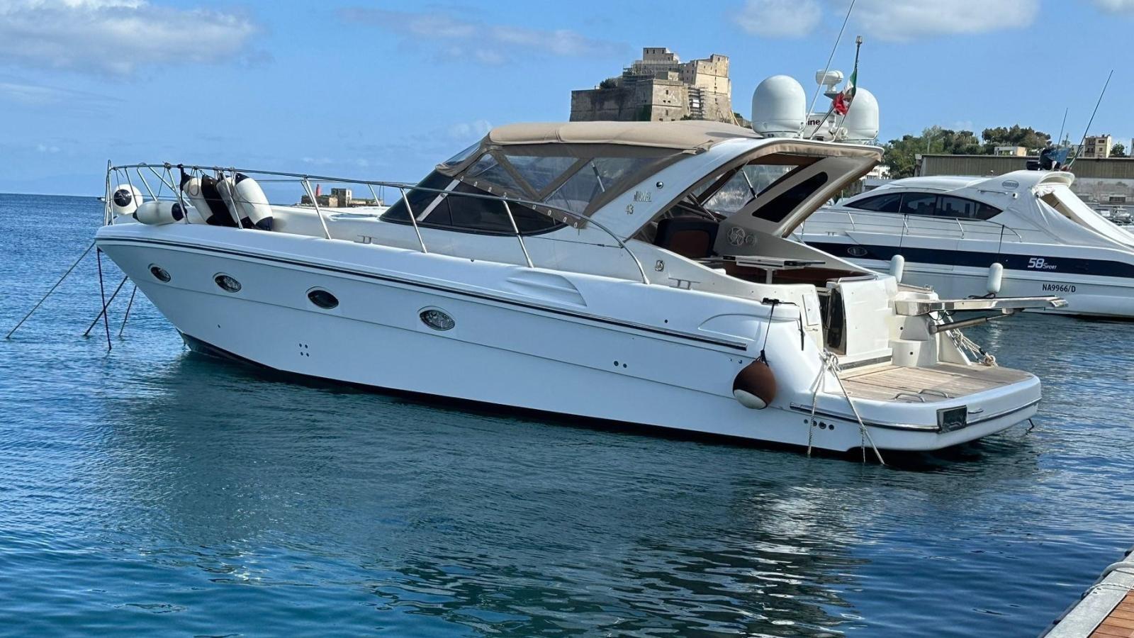 The Innovations and Projects Mira 43 is an iconic Italian open cruiser featuring a sleek profile and an exceptionally spacious cockpit.