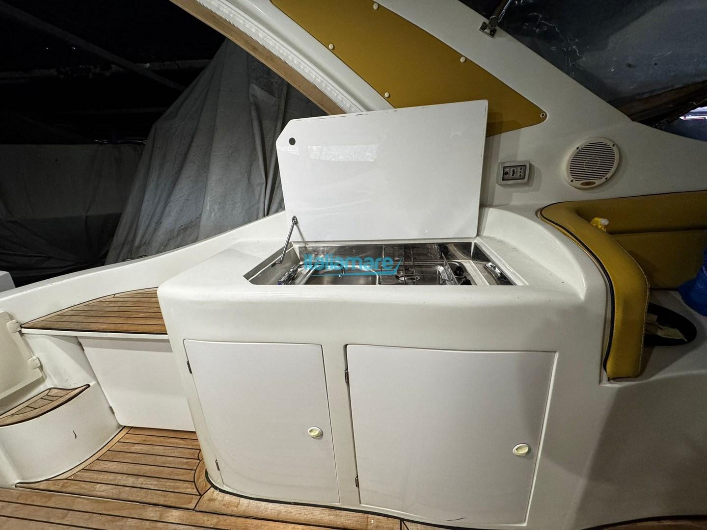Engine Alarm, Bilge Alarm, Water pressure pump, Deck Shower, Electric Flaps, Hard top, Washbasin in the cockpit, Courtesy Lights, Gangway, Platform (in teak), Automatic Bilge Pump, Teak Cockpit, Shorepower connector, Water harbor connector system, Electric Windlass, swimming ladder, cockpit table.