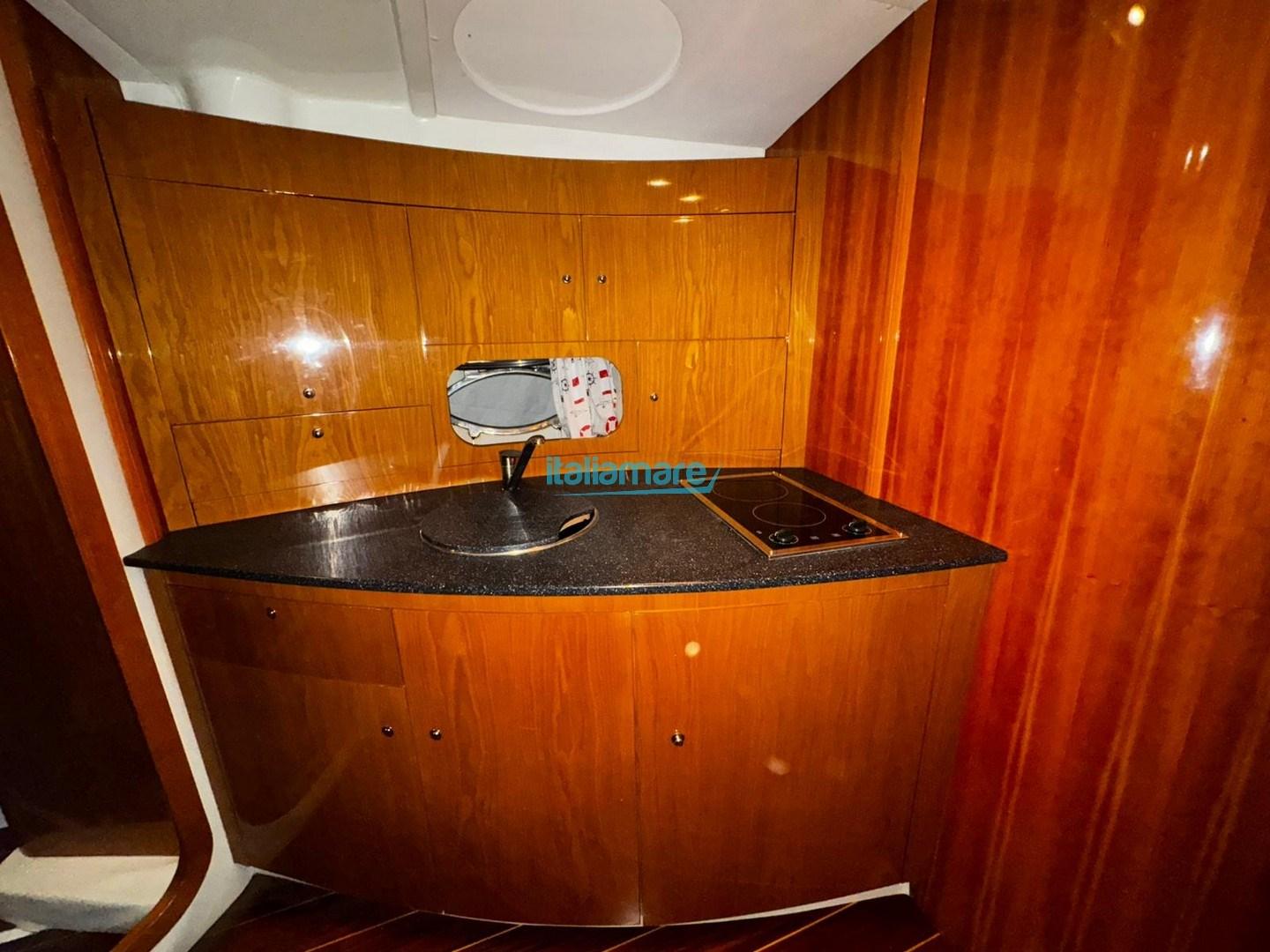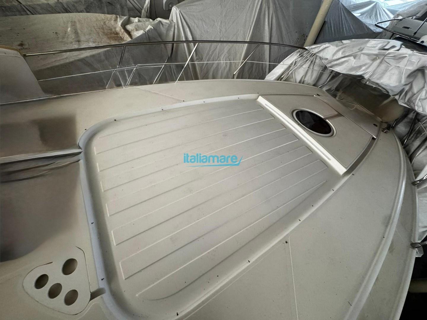 The deep-V hull guarantees stable and safe navigation even in rough seas. Performance is powered by Volvo Penta engines with sterndrives, delivering a cruising speed of approximately 25 knots and remarkable maneuverability.