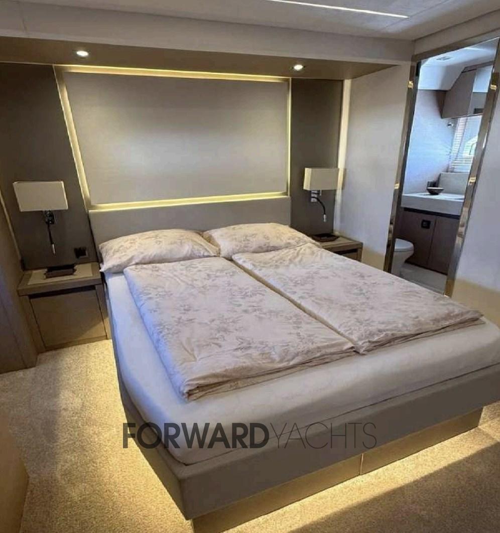 With a length of 21.46 meters and a width of 5.33 meters, it offers large, well-distributed spaces finished with quality materials, designed to ensure maximum comfort both at sea and at anchor.