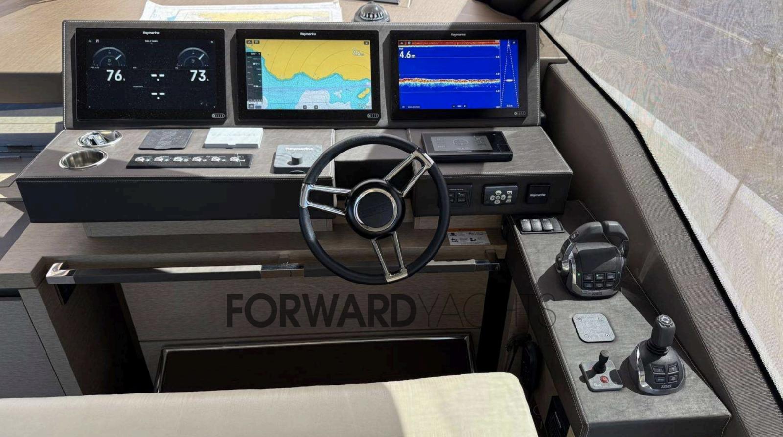 The yacht has four spacious cabins with en-suite bathrooms and an independent crew cabin, ensuring comfort and privacy for all guests on board. The outdoor spaces, from the panoramic flybridge to the cockpit and the bow sundeck, invite you to experience the sea at any time of the day.