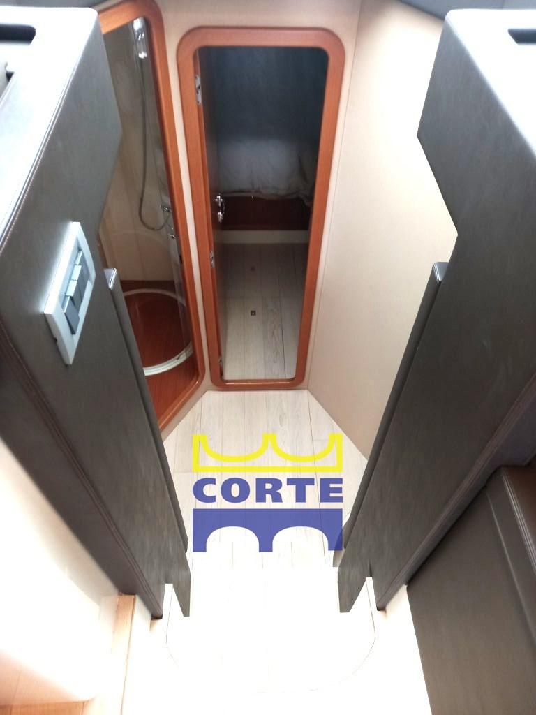 Engine Alarm, Bilge Alarm, Anchor (35 kg con catena da 10), Water pressure pump (doppia), 2 Battery charger, Shore power cable, Deck Shower, Twin Steering, Bow Thruster (revisionata 2023), 2 Secondary Propeller, Hydraulic Flaps, Tender Crane (passerella), Fire Extinguishing System, Washbasin in the cockpit, Courtesy Lights, Gangway (elettroidraulica Besenzoni), Platform (poppa con gavone), Waste Water Tank Drain Pump, Automatic Bilge Pump, Entry door, Teak Cockpit, Shorepower connector, Water harbor connector system, Rollbar, Electric Windlass (Quick), swimming ladder (a scomparsa), Stabilizers (Seakeeper), cockpit table, Horn, Stern Winches, Bow Winches (Lofrans comando a pedale).