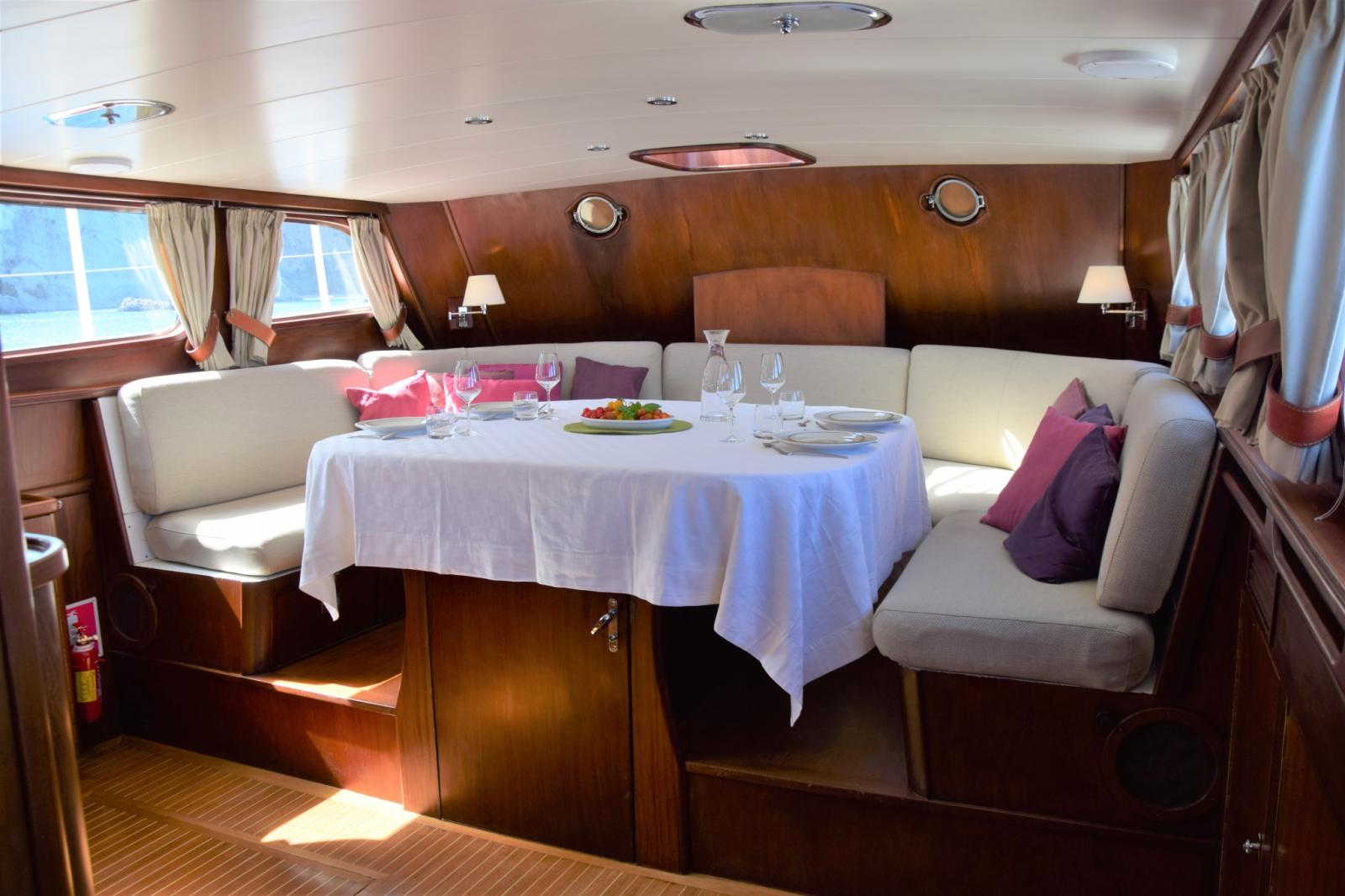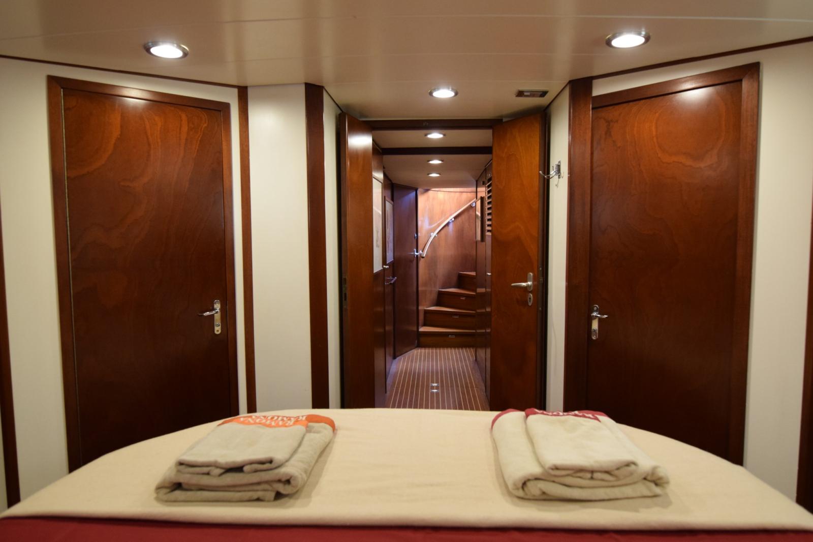 A true displacement yacht, RAMONA offers excellent stability, safety and comfort at sea, enhanced by her steel construction and stabilization sails. Her interiors, finished in fine woods, provide warm and well-balanced living spaces, ideal for extended cruising.