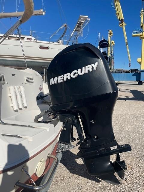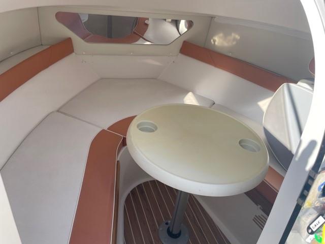 A generous cabin for 2 berths, a friendly cockpit with table and upholstery, a 115hp Mercury 4-stroke engine (300h) regularly serviced by a professional, a Satellite Braked Trailer fully reviewed for your transport. A complete navigation equipment.