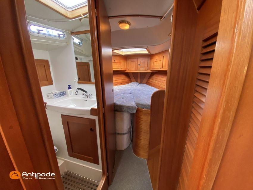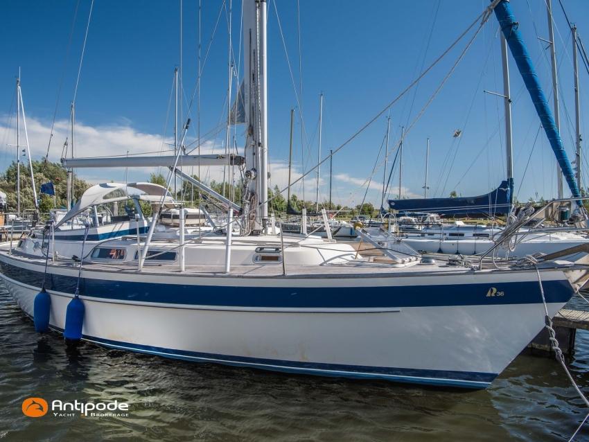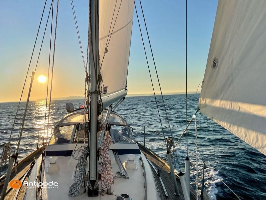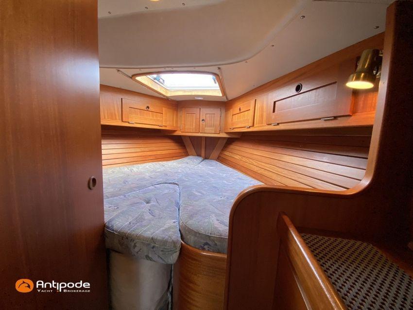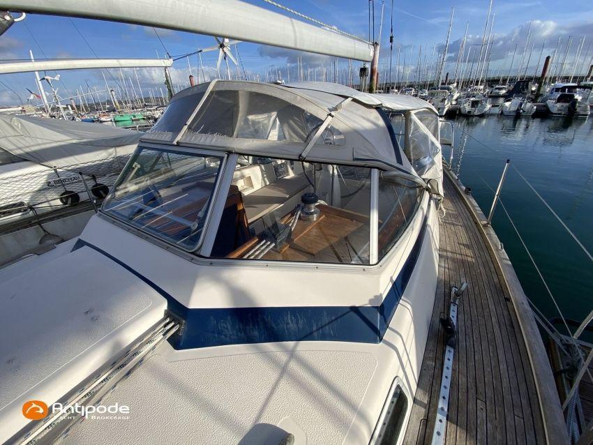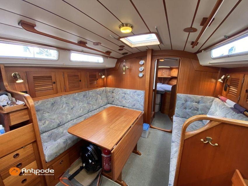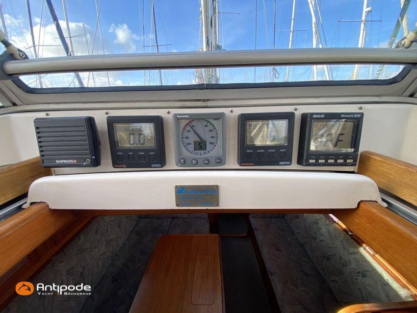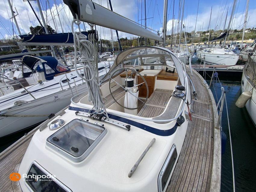 Hallberg Rassy 36, 1992, VOLVO MD 22, 57 hp (1300 hrs), Bow thruster, MKI Version, Interior layout version 1 forward cabin, 1 aft cabin, 1 heads (toilets + shower), Marine mattresses, Teak deck passageway, Cockpit table (wood) with 2 folding leaves, Cockpit sprayhood - 2019, Cockpit cushions, Electric windlass, Full cockpit enclosure - 2022, Deck stepped furling mast, Furlable main sail - Elvstrom 2022, Furling genoa - ELVSTROM 2022, Aluminium spinnaker pole (mast storage system), Adjustable backstay, In board autopilot, GPS and chartplotter (cockpit) - Raymarine, Radar with radome radar fitted on mast, Hot and cold pressurized water, 12 V to 220 V Inverter, Solar panels - 2023, Dinghy, Located Brittany. For more information or to make an appointment for a visit, contact : François Mouchel 06 62 30 97 30 - francois@antipode-yachts.com