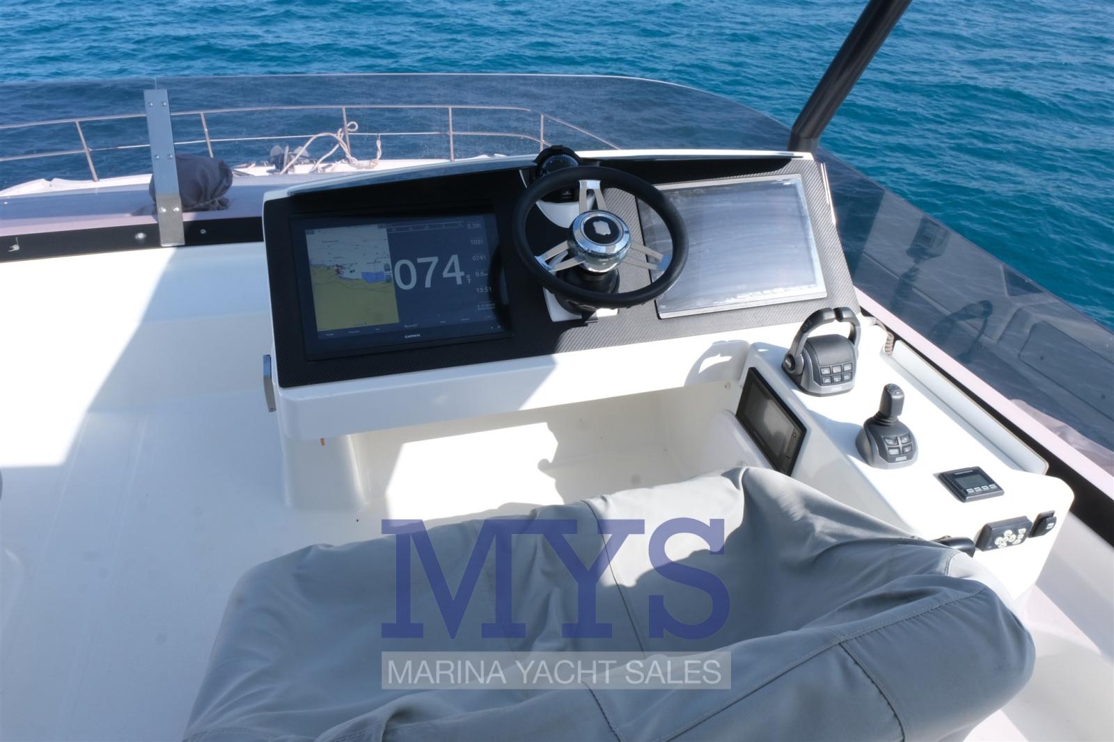 AIS, Rudder angle indicator, Radar Antenna, Electronic engine control, Chain counter, 3 Joystick, Plotter with GPS antenna, Co-pilot seat.